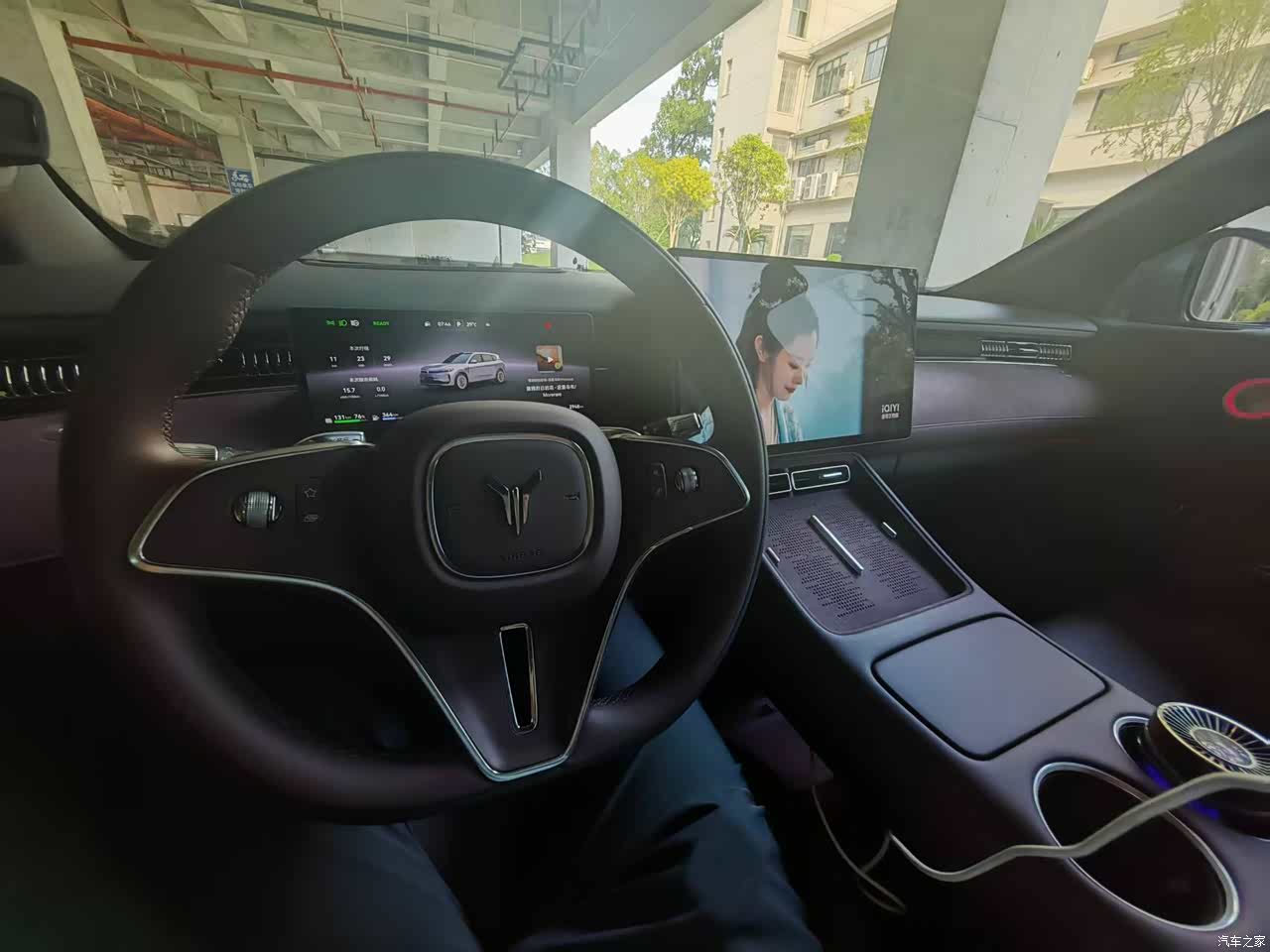 车门一开,里头是极光紫的内饰,带点灰,看着挺显安静,手能摸到的地方都是麂皮或者软的,不觉得硬,新车那个味道也小,家里有孩子或者鼻子敏感的,坐着也放心。中控那个15.6英寸的屏,是鸿蒙系统,划起来很顺,跟华为手机连着也方便,投个屏放个音乐都快,就是App还是少了点,要是以后能多点选择就更好了,语音助手识别挺准,大部分时候都能叫得动,偶尔自己会醒过来,或者反应慢半拍,挺怪的,副驾那边,他们叫女王座,有电动腿托,能躺得挺平,我老婆就爱坐那,一上车就开按摩开通风,虽然风不大,她老说比家里的沙发还舒服。