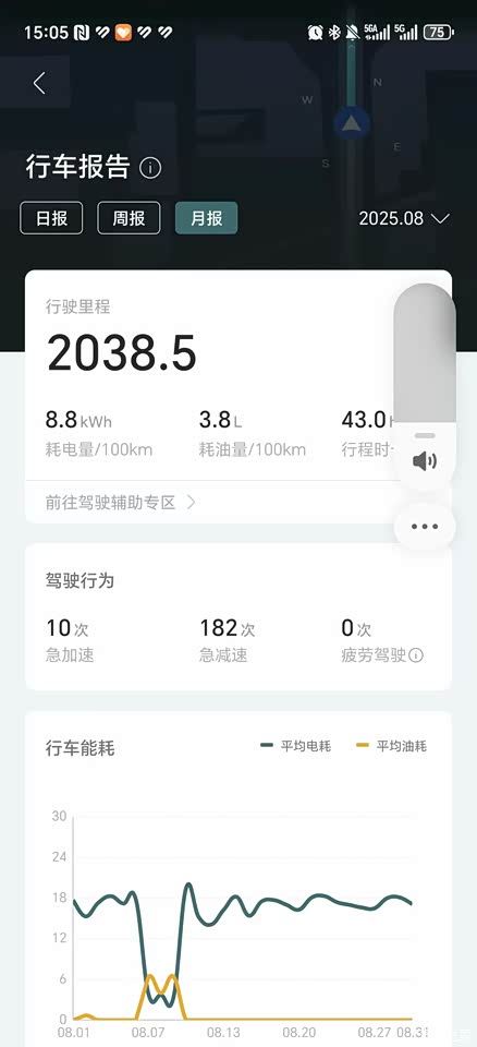 续航这块不用太焦虑,四驱增程版,官方说纯电能跑259公里,我在市区里开,空调音乐都开着,跑个170到180公里没问题,400V的快充,从30%充到80%也就二十分钟,吃个饭刷刷手机的工夫就差不多了,油电都能用,满油满电能跑1000公里,高速上没电了用油,油耗大概七八个,跟同级别的车放一块看,很够用了。