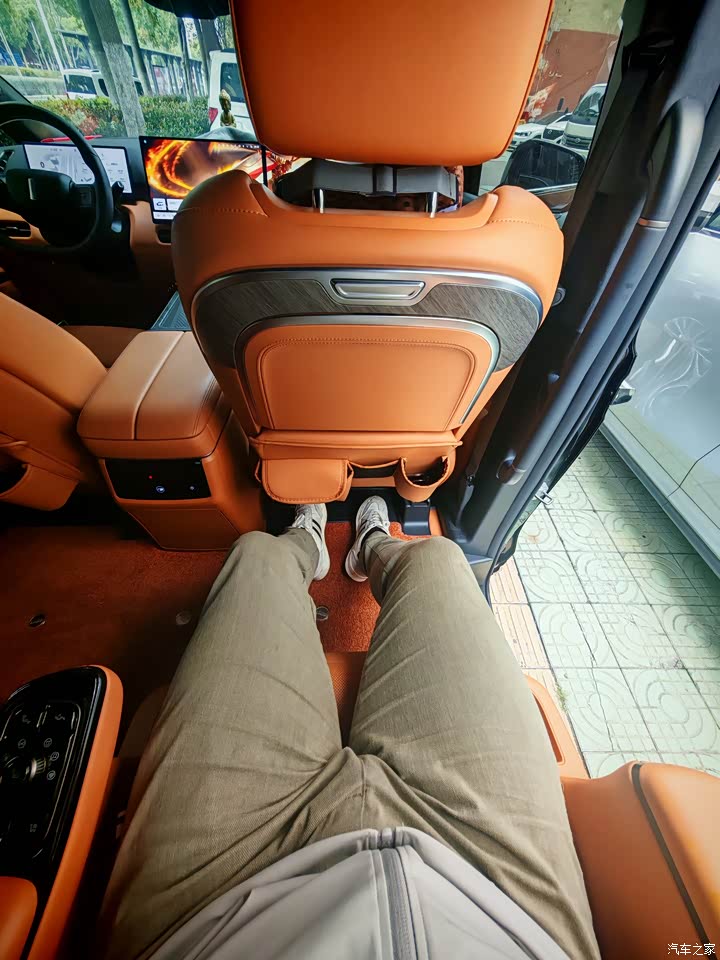 高山8的车身尺寸与腾势D9接近,比岚图梦想家略短、略高,但内部空间是三车中最大的。二三排共轨设计极大增强了空间灵活性,尤其第三排的乘坐体验提升明显:座椅加长、腿部空间充裕(二排前移后),不再仅限于临时乘坐或身材瘦小的乘客。即使是我1.86米高、210斤重的表哥坐在第三排,也丝毫不感到压抑。当二、三排同时前移时,后备箱内深可达1.5米,轻松容纳自行车等大件物品,这一表现超越同级多数MPV。