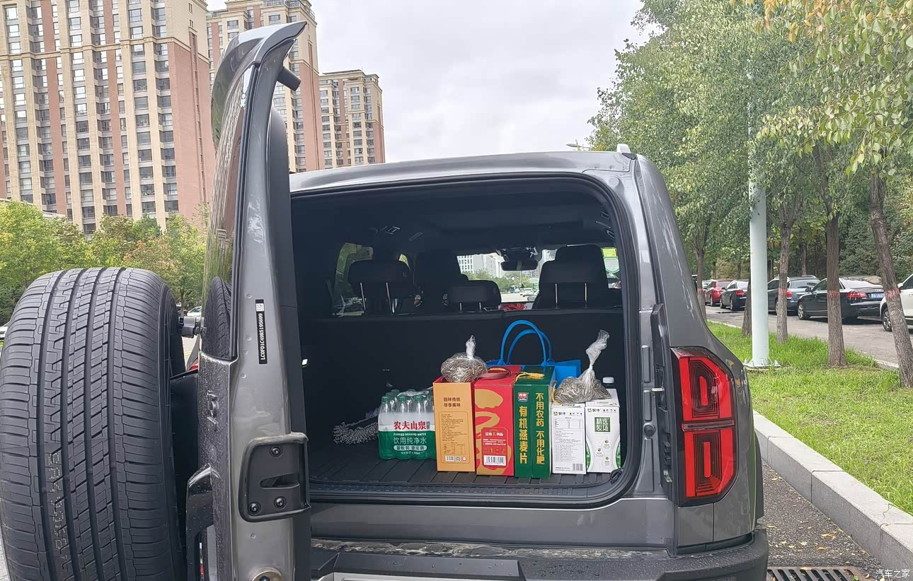 宽敞舒适,装载能力强 车身尺寸为 489019701920mm,轴距 2800mm,车内空间非常宽敞。我身高 1.8 米,坐在驾驶位,头部和腿部都有很大余量。后排坐三个成年人也不觉得拥挤,腿部空间能有两拳多,头顶空间一拳有余。后备箱空间也很可观,侧开式尾门开口大,装载行李特别方便,一家人出去露营,各种装备都能轻松装下。