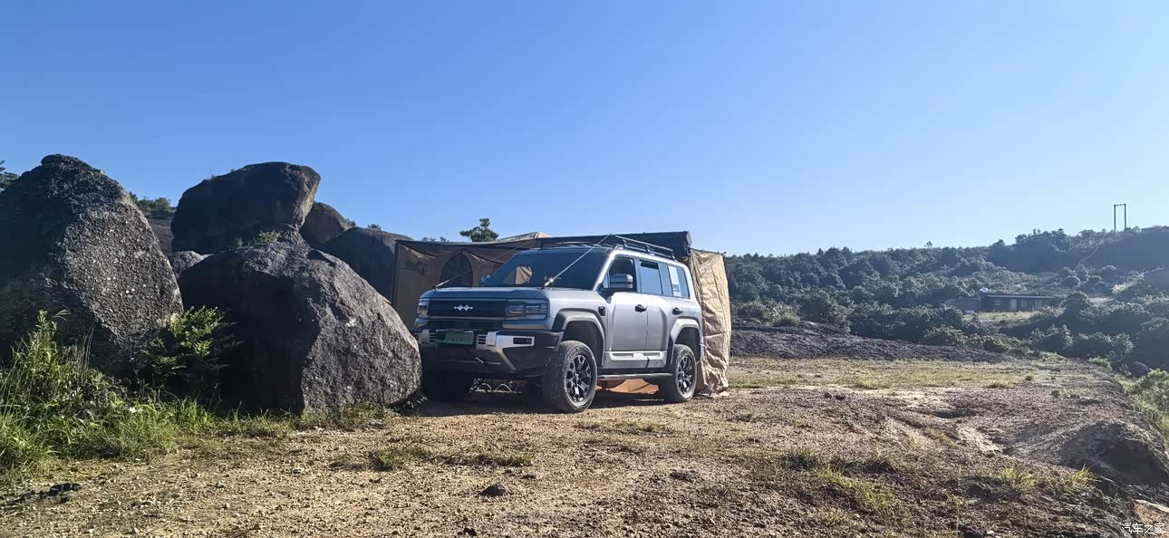 夜半时分,银灰色的豹5如一头蓄势待发的猛兽,载着我们这群追光者,向五奇仙疾驰。山路崎岖,豹5的越野性能展露无遗,方正车身碾过碎石,大轮胎稳稳抓地,外露备胎晃动着野性的节奏。车顶行李架满载露营装备,仿佛载着整片星空。抵达山顶,天边刚泛起鱼肚白,我们迅速架起外放电设备,电烤盘滋滋作响,火锅汤底翻滚,茶香混着晨雾升腾。朋友们围坐车旁,笑声惊醒了沉睡的松林。当第一缕阳光穿透云层,洒在豹5硬朗的车身上,我们举杯敬这热血沸腾的夜——是豹5的可靠动力,让我们在荒野中也能围炉夜话,用钢铁与电流,煮出了人间烟火与山河浪漫。