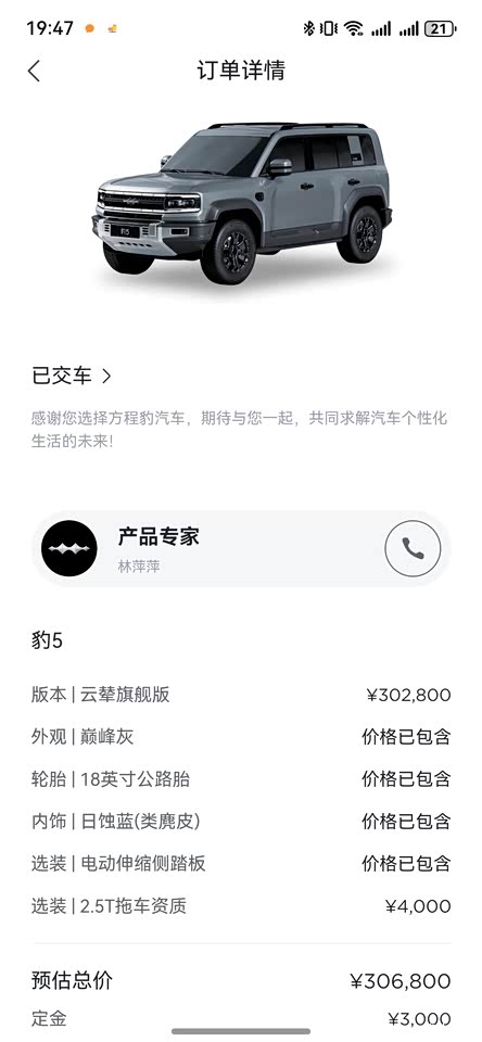 我第一眼看到豹5,就被他的魅力深深吸引。他既有城市的优雅,又有越野的狂野,完美地诠释了“可城可野”的理念。在对比了同类型的越野车后,我更加坚定地选择了他。降价五万后,性价比更是让我心动不已。虽然纠结了很久,但最终还是决定入手云撵版的豹5。现在,我已经迫不及待地想要驾驶他,开启一段全新的旅程。