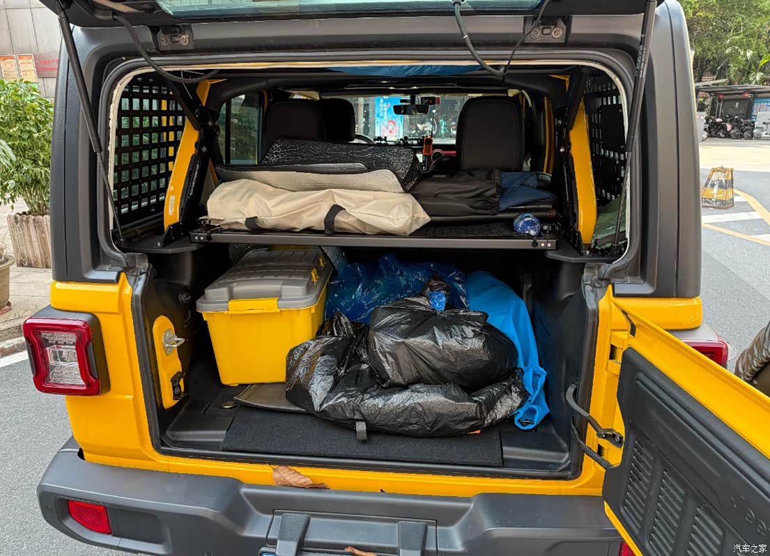 至于内部空间吧,仁者见仁吧,外形是大气,为了性能,突凸比较多,导致内部空间不是很大,但相对我来说够用。不过防滚架后备箱部分改装利用的余地比较多,比如安装气泵什么的很不错。 后排我不做评价,毕竟这是一台硬派越野车,不需要多大空间。 正副驾座椅,尤其是现在的新款4Xe很舒服,功能也完备。建议朋友们去试驾。
