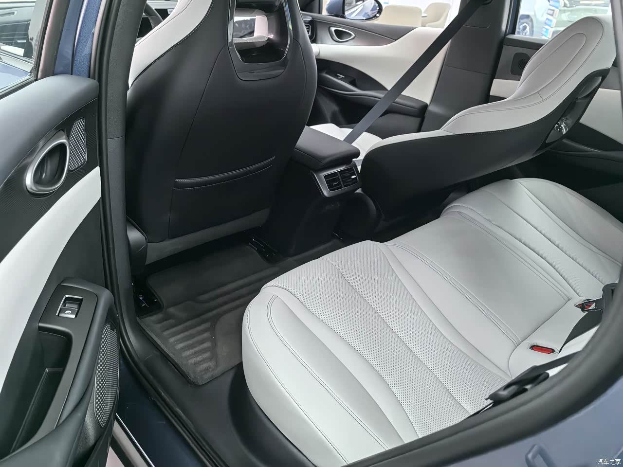这款车的空间非常大。无论是前排的乘坐空间,还是后排的乘坐空间。我1米8的个子坐进去腿部空间很宽敞。包括到后排是全平的地板设计,这应该是新能源的优势。