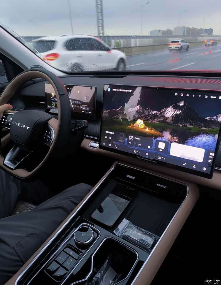 内饰双拼配色看着高级,摸着手感也可以。15.6英寸的中控屏够大,怀挡设计还省出了不少储物空间,放手机、水杯都方便。就是实体按键太少,调空调得在屏幕上点,开车时有点分心。