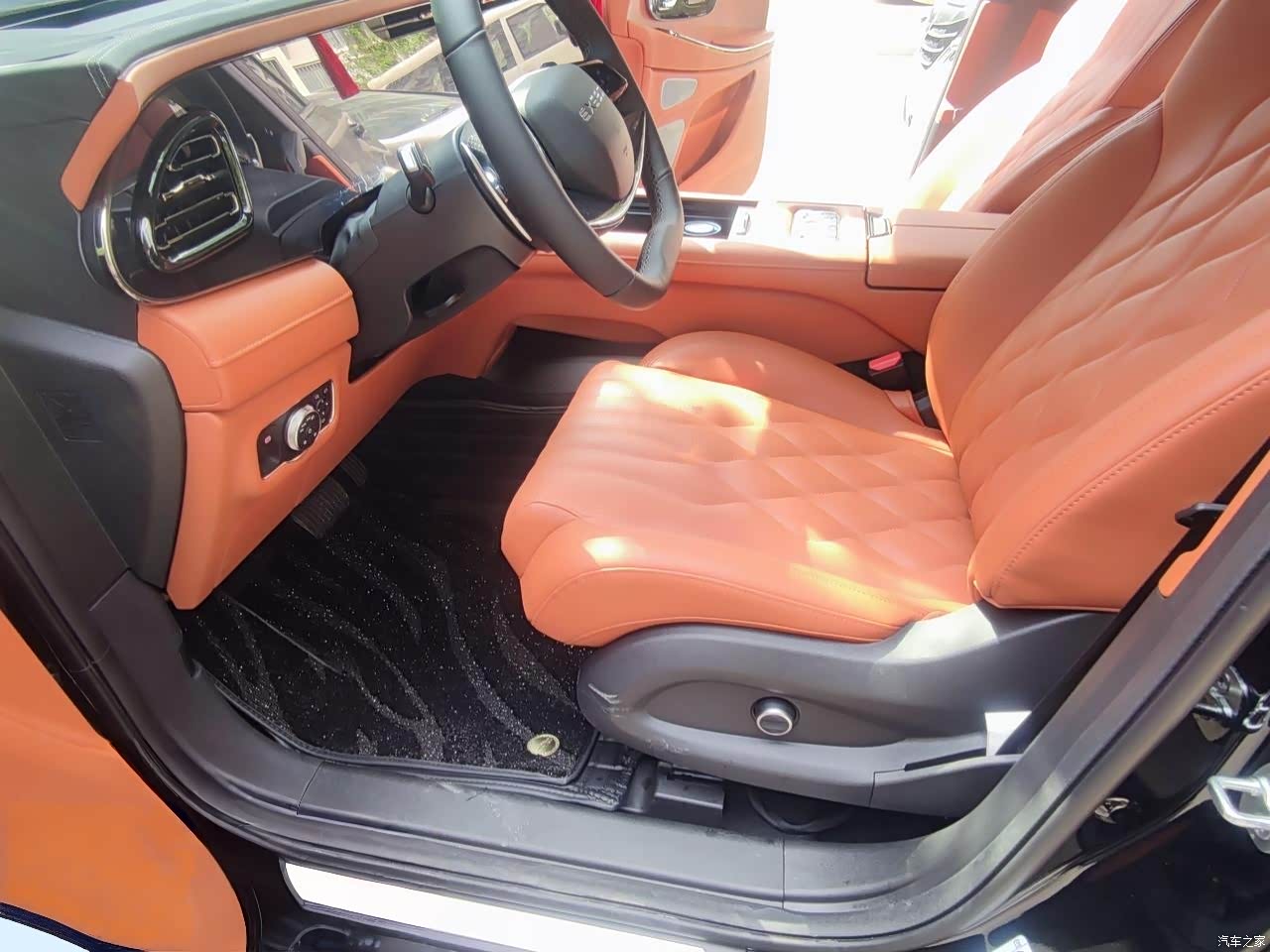 车内空间充裕,驾驶位三连屏看着很显高级,整车外观看着也大气,乘坐路面表现舒适性很好,车内并无太刺鼻的味道,黑色外观配上橙色内饰,优雅大气
