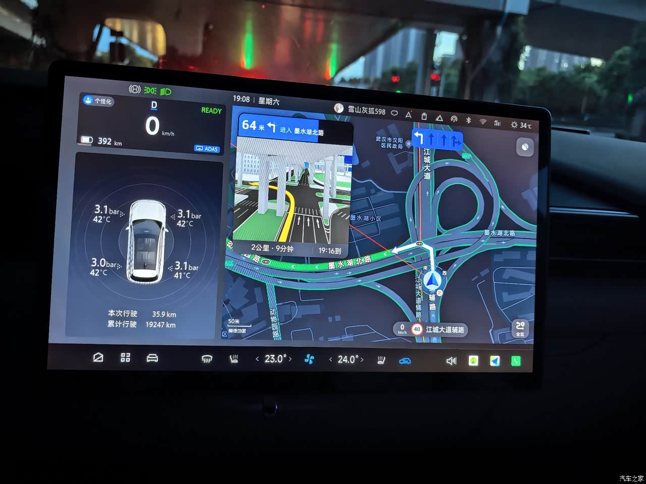动力响应非常跟脚,在市区车流中穿梭、需要超车时,只需轻踩电门,动力来得迅速且平顺,超车动作干净利落。方向盘转向手感轻盈而精准,车头指向性很好,开起来有种人车合一的流畅感。底盘调校偏向舒适,也有一定的韧性,过弯时支撑性不错,整体给人一种稳健的感觉。HUD抬头显示非常清晰,用习惯了感觉比传统仪表盘好用,视野更开阔,让我开车可以更专注。