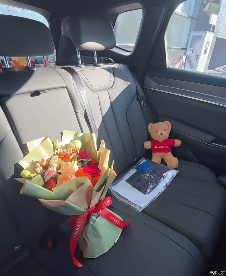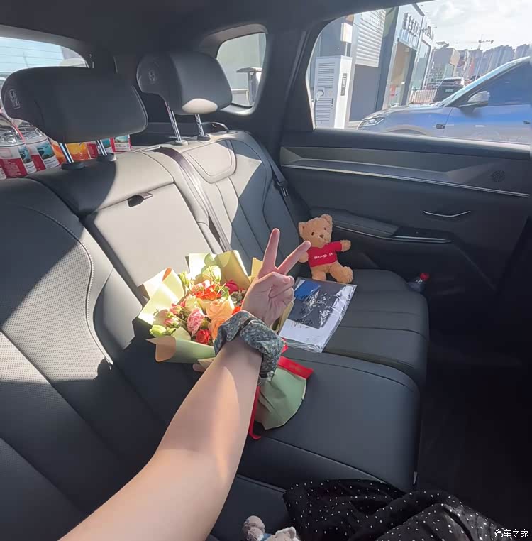 驾驶感受还有个点特好,就是发动机和电机衔接得太自然了!加速的时候完全没突兀感,踩多少动力就来多少,特别跟脚。转向也轻,刚才在 4S 店门口挪车、掉头,一只手就能轻松转方向盘,市区开车最怕挪车费劲,这车这点太友好了。