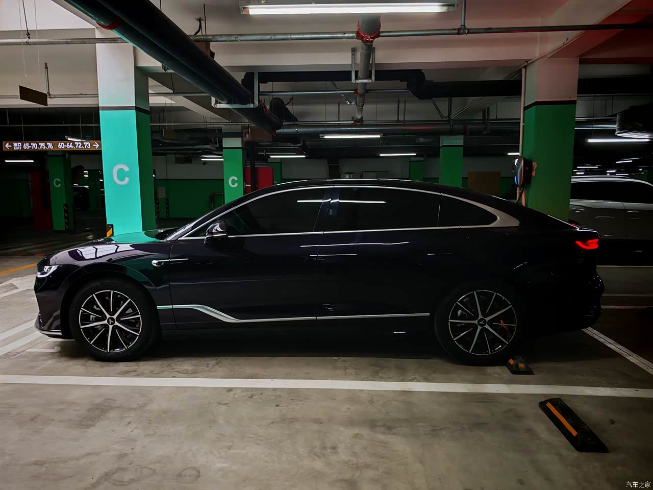 旭日紫这个颜色挺有意思,平时瞅着跟黑色差不多,太阳一照,那股紫色就泛出来了,还带点闪,看着就不一般,大格栅配上日行灯,那个气场就有了,就是不耐脏,沾点灰就得往洗车店跑,轮毂是19寸的,配245/50的轮胎,样子和舒服程度都还行。