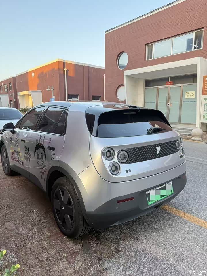 超级好看,小虫子本身的颜值就很好看很可爱,我选的外观颜色是灰色,酷酷的感觉。而且自己本来也打算改装一下外观,所以选车的时候颜色也就没那么重要啦。我是把小虫子换了一个更有质感的灰色,然后加上了labubu的黑色贴纸,太酷了简直。这个车我只要一开出去就有好多人盯着看,还有好朋友已经在打算入手我的同款了。这个外观开到路上真的是很炸眼,给人一种很高级很小众很有品位的感觉。 整个车身是比较小巧的,车身和尾部相接之处有车色做链接,很好看。车灯我属于是比较喜欢的那种,最关键的是三个车灯还可以分别点亮,爆闪效果、消消乐效果,可玩性也很高