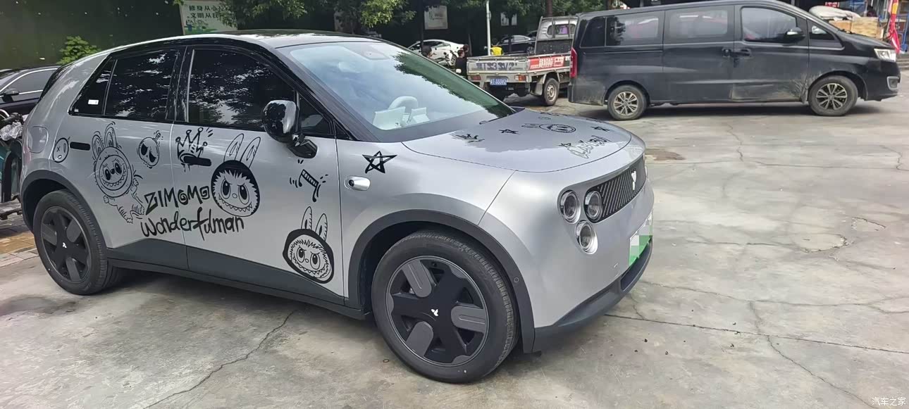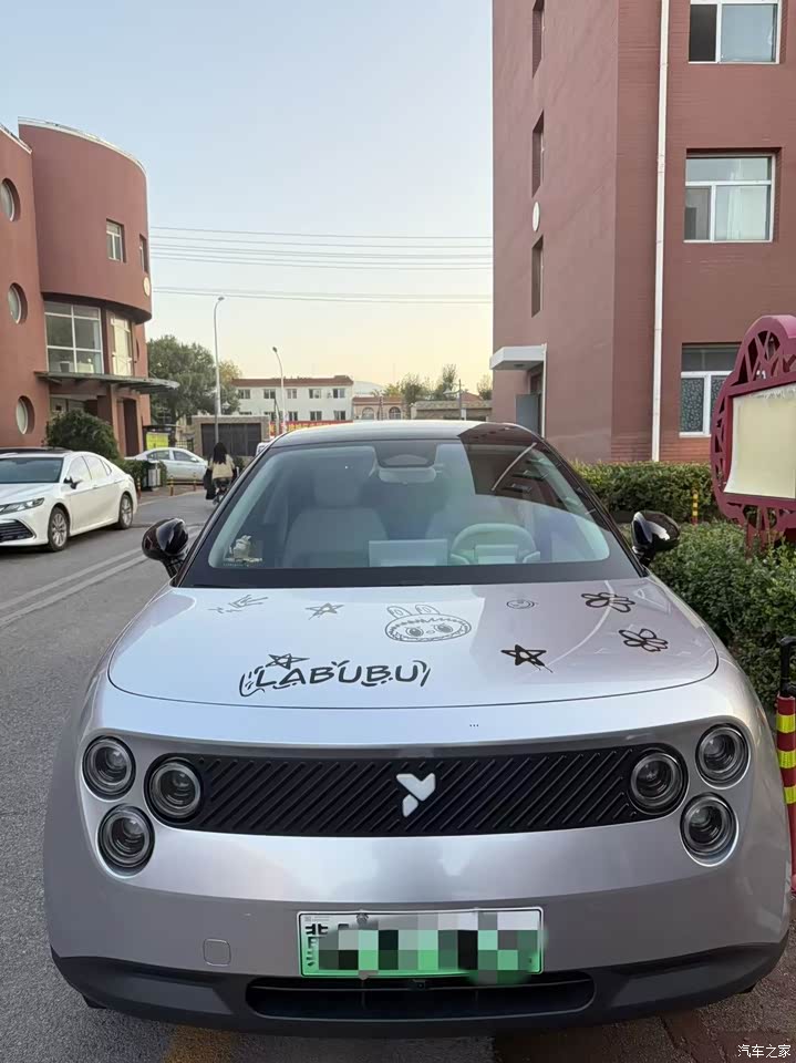 最满意的应该算是我改过之后的外观了吧,灰色车身搭配labubu的贴纸,又甜又酷,又可爱又帅气,我太喜欢这个风格了。小虫子的车身也非常协调,尺寸我开刚刚好,下车时不会一脚踩不到地,用起来特别有安全感。