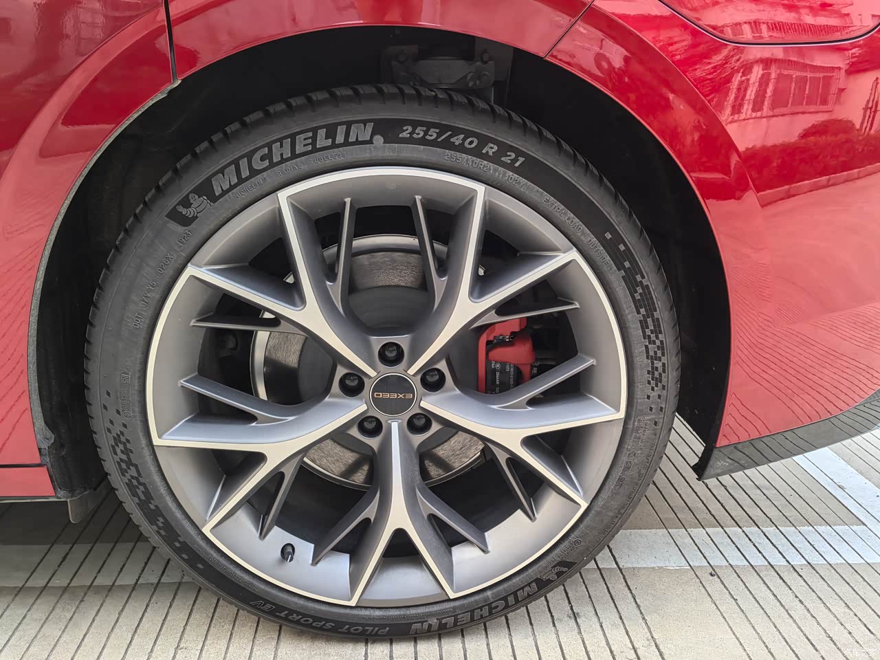 255 40 R21的米其林配上树杈轮毂(电耗高了,但帅是一辈子的事),碳氮共渗刹车盘一万公里不生锈