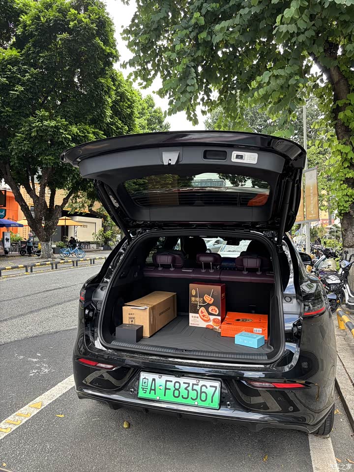 作为中大型SUV,岚图FREE+的空间比我老起亚宽敞很多。轴距2960mm,前排调好座椅后,后排乘客坐下后还有两拳多的空间。老婆说长时间坐在后排也不会感到拥挤,靠背还支持调节角度,比之前坐在起亚后排要舒服很多,我体重有178斤,坐在主驾驶位也不会觉得局促,优点是前后排空间很大,储物格多达33个,随身物品放在哪里都很容易找到,缺点是后备厢高度一般,因采用溜背造型,放一些较高一点的行李箱时需要倾斜一定角度,实用性比比亚迪唐差一些。