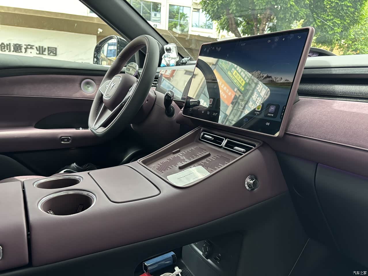 内饰选择了极光紫,不扎眼、偏低调、上档次,大部分的软性材料包覆质感非常好,中控屏悬浮、液晶仪表板与之相配,科技感比以前的老起亚强太多了。老伴上车后说比之前家用的车更豪华,就连孩子都说这个车内的极光紫颜色好看,感觉以前看问界的内饰也不错,但色彩比较普通,岚图这极光紫的内饰真的是眼前一亮。