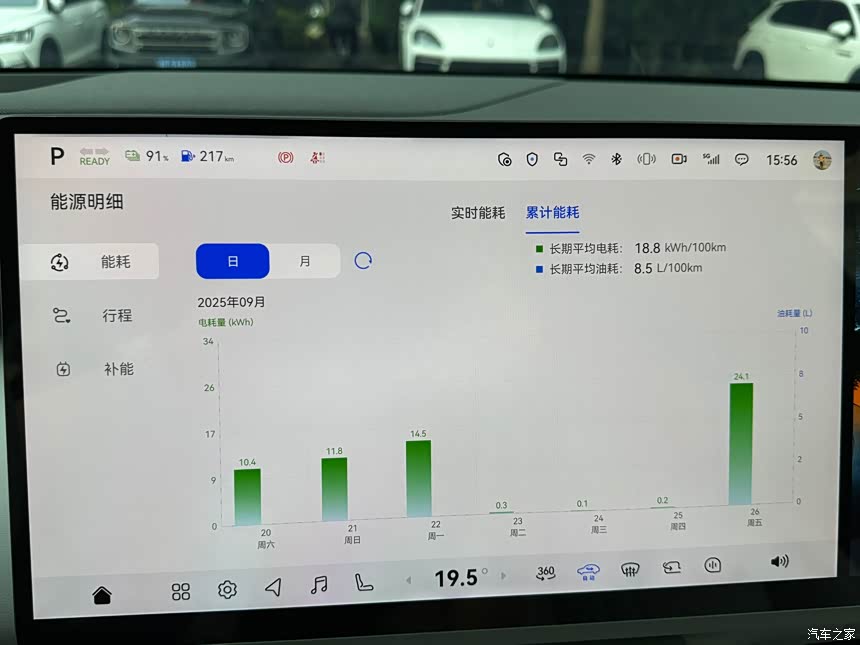 续航满分。充满电,纯电模式能开180公里,加了300块钱的有,表显纯油的续航里程是700公里。不论是城市行驶,还是长途自驾,都能做到续航无忧!