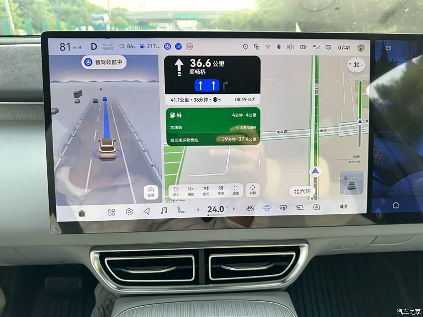 电门轻盈,起步轻点就能完美跟车,响应迅速,还不突兀。低速行驶时有提示音提醒行人,安全感拉满。速度开起来,得益于全车双层夹胶玻璃,静谧性非常好