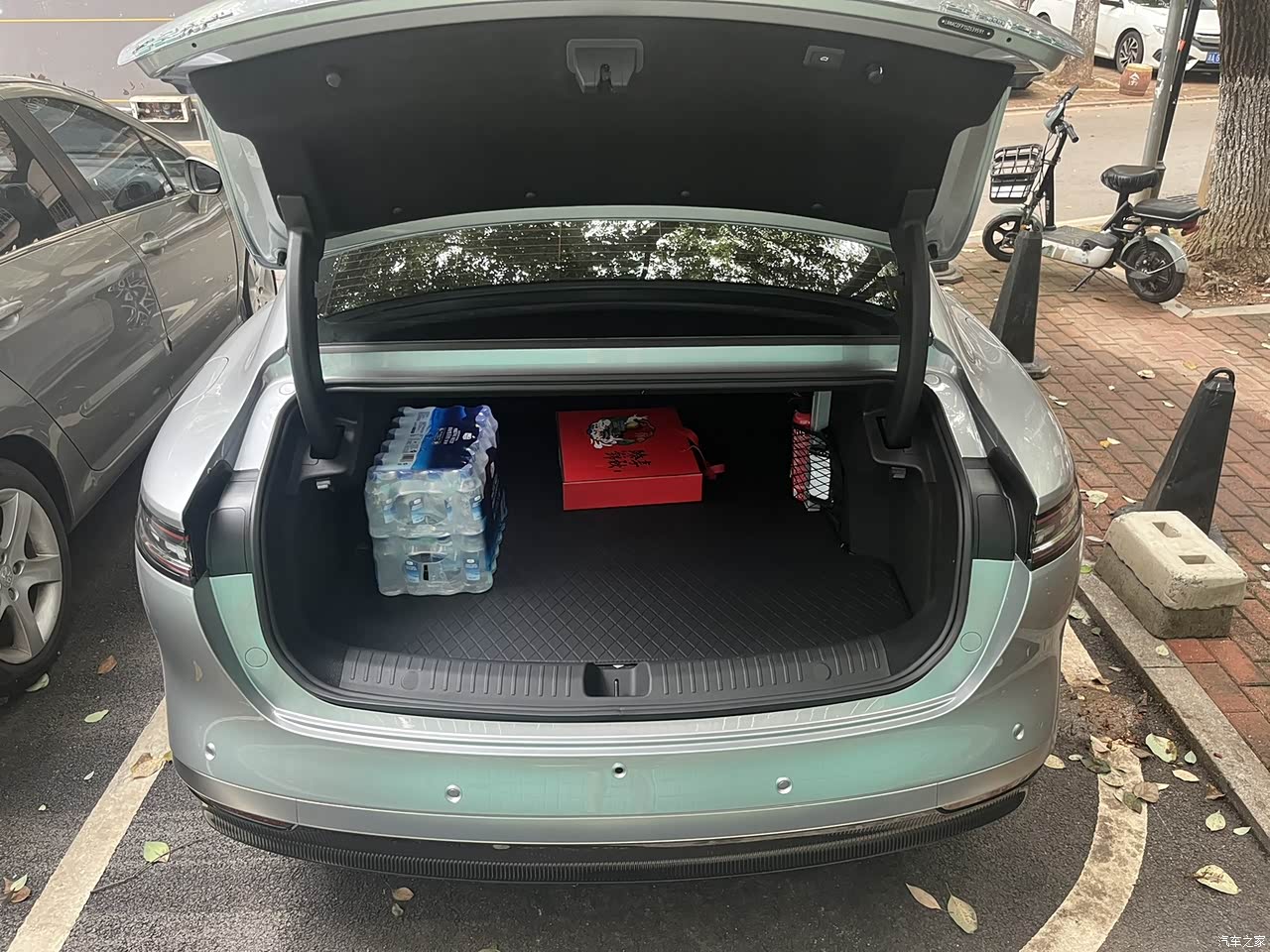 5018mm 车长搭配 3000mm 轴距,前排头部空间一拳三指,后排膝部空间达 165mm,坐后排可轻松翘腿。门板暗格能塞折叠伞,后备箱虽常规容积一般,但一般比较大的物件可以支持放倒后排座椅增大空间。