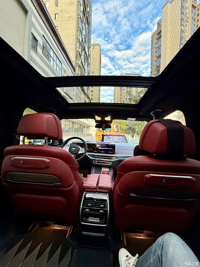 X5的后排空间确实很不错,座椅非常宽大柔软,后备箱空间的天地门很方便、经典