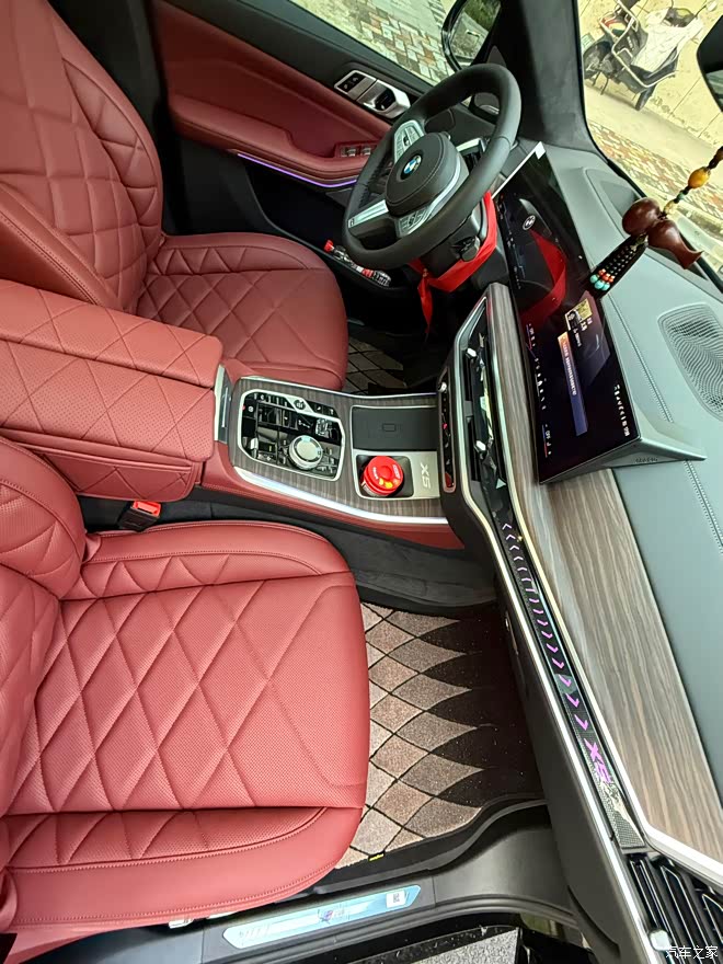 这个炫黑窗框配上黑色金属膜质感很好,第一张是没贴膜、后边两张贴完车衣窗膜的,车子外观年轻运动、外观很霸气,内饰火山红很运动,X5的后边看着太厚重很喜欢,贴完车衣漆面更亮了