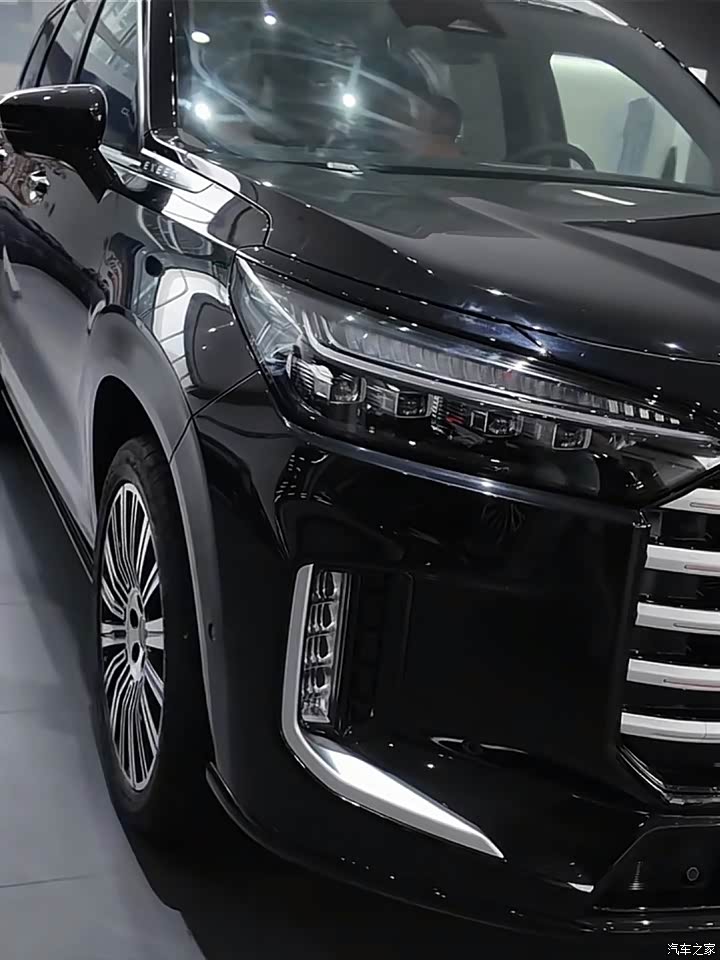 揽月 CDM 的外观设计大气稳重,展现出中大型 SUV 的强大气场。前脸采用大尺寸进气中网,内部镀铬横条设计精致且富有层次感,格栅上部集成的星轨式 LED 灯带贯穿车头,与两侧犀利的大灯组相融合,点亮后极具辨识度。车头下方长条形进气口搭配两侧银色 “獠牙” 装饰,增添了几分运动气息,使整车风格霸气十足。车窗周围一圈镀铬装饰与侧裙位置的镀铬条相呼应,提升了车辆的精致感。密辐条式轮毂设计独特,不仅美观,还为车辆增添了一份豪华质感。来到车尾,全新样式的贯穿式尾灯十分夺目,两侧分叉设计与内部层次丰富的灯带造型相得益彰。车尾上方的扰流板与下方的镀铬贯穿饰条进一步提升了车辆的运动感