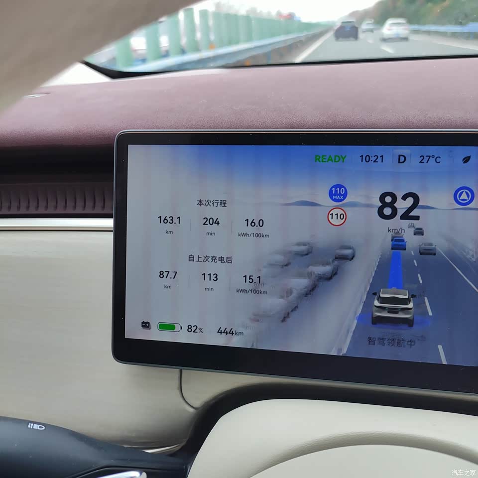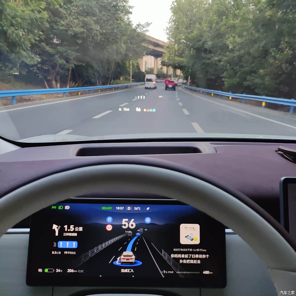 1.高速巡航:还是比较稳定,超车时也比较果断,碰上修路还能主动绕行,跑长途脚不酸了。 但是在进出匝道时车速有点快且比较靠边,坐在车里还是有点小怕,希望以后OTA可以解决此问题。 2. 续航小槽点:够用但不够“惊喜”,这车我唯一不太爽的就是续航。官方标600公里(CLTC工况),实际开空调+市区堵车,也就跑460公里左右,平时上下班没问题,但是长途还是有点焦虑的,虽然支持5C快充,但找超充桩还得绕路,以及规划充电站,希望后期OTA能有改善优化。