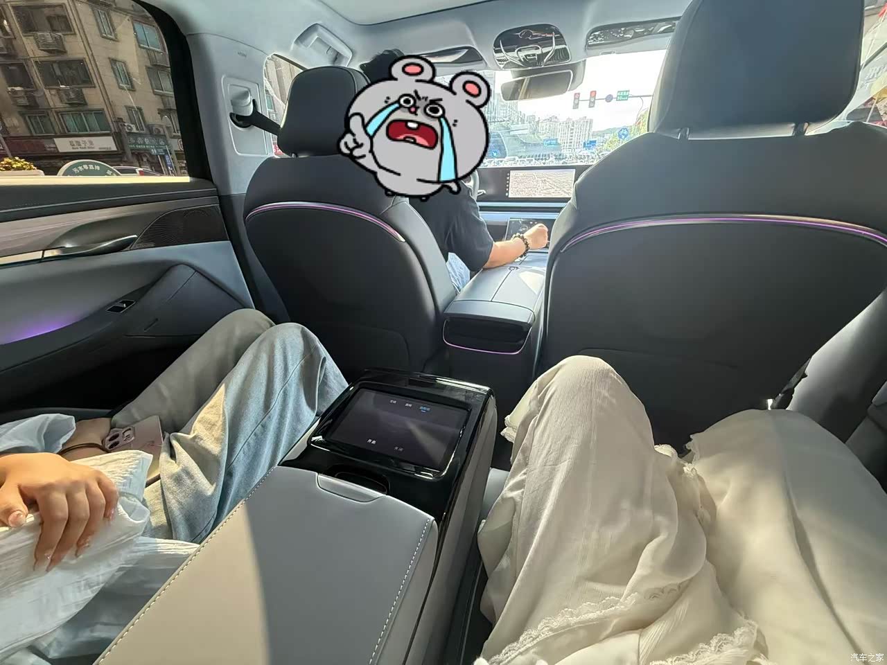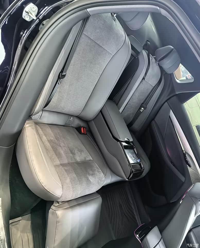 空间是真没话说,带我爸妈还有岳父岳母出去玩,后排坐三个人一点不挤,我爸一米八的大个子,腿都能伸开,他们还挺喜欢玩后排那个屏幕,就是有时候不小心碰到按摩,座椅突然动一下还吓一跳,门板上放三瓶水没问题,中控台下面是空的,纸巾雨伞都能塞进去。