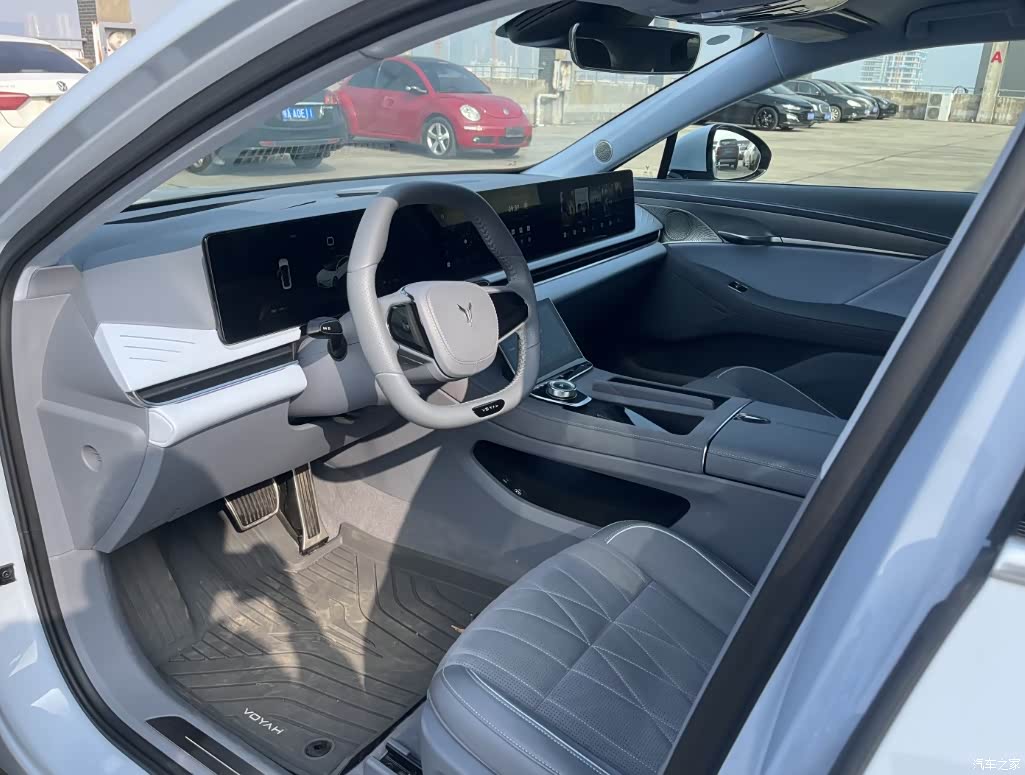 内饰是灰色的,刚开始觉得高级,几个月下来发现不行,穿牛仔裤坐久了,座椅边上都磨出印子了,三种皮子手感还不一样,那个大屏,白天反光,调个座椅还得用手遮着光看,手指头一摸全是印,车里得常备一块布。