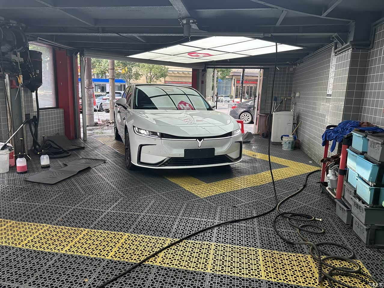 车身选的杜若白,阴天看着是灰白色,太阳一照就亮了,洗干净了确实好看,就是不耐脏,车停在树底下,落点花瓣什么的就黏住了,近看全是小点点,那个贯穿大灯晚上解锁的时候,灯带从中间往两边亮,还挺酷的,就是洗车师傅说缝里容易卡东西,得拿水枪多冲冲。