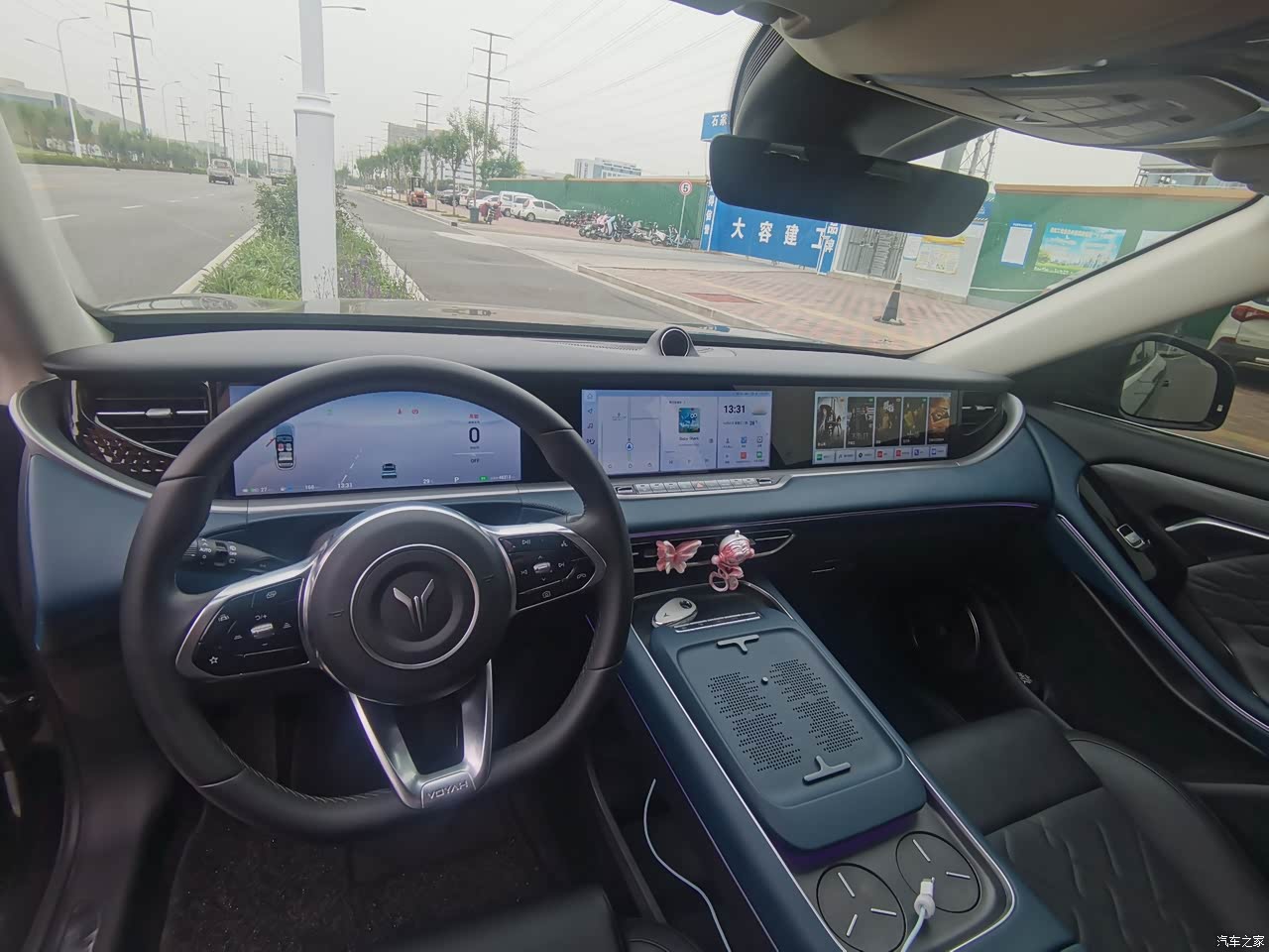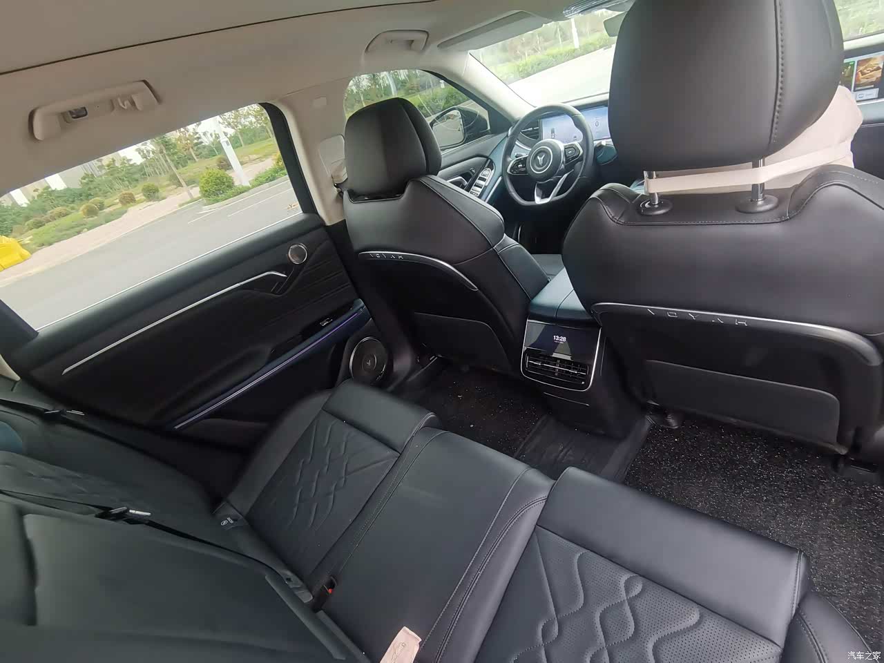 驾驶感受,底盘和动力前面都说了,再补充一点,方向盘很轻,低速掉头什么的很轻松,速度上去了又会变沉,很稳,刹车脚感也挺线性,很好控制,就是电量不多的时候,你一脚急加速,那个1.5T的增程器就会启动,声音和振动在车里能感觉到,高级感就差了那么一点,整车的隔音还行,就是速度超过一百,A柱那边会有点风噪,可能跟轮胎也有关系。