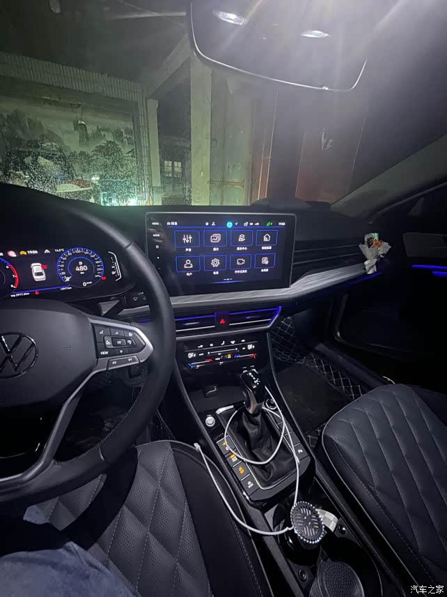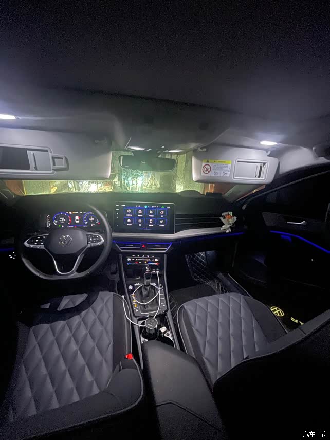 内饰说实话没什么好说的,依旧是大众家族套娃内饰,看上去没有什么亮点,好在中规中矩。液晶仪表,悬浮式中控屏氛围灯贯穿中控以及四个车门把手,主副驾脚窝灯,方向盘实体按键(优点是不会误触)