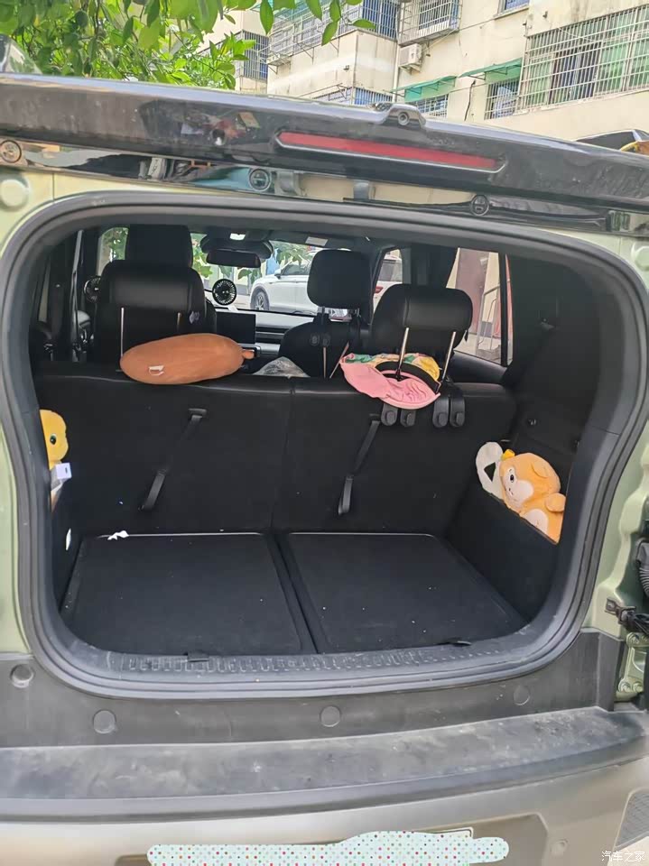 因为是方盒子造型,所以车内空间利用率很高,头顶空间也很宽,但是这个车没有前备箱,缺少了电车的灵魂