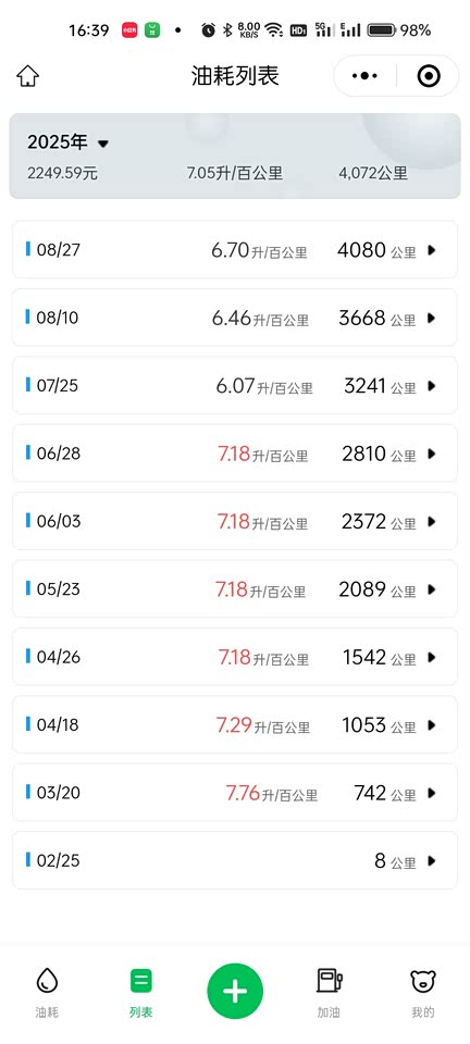 可能表显油耗会有些许虚,但根据每次加油金额计算后的油耗就更能体现他的低油耗家用经济性了,真实数据体现!