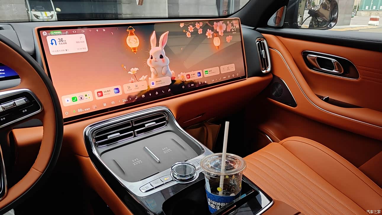 最满意: 一、外观,黑外橙内,确实帅呆了。 二、动力,870匹马力全时四驱4.5秒破百,爽歪歪。 三、空间,6个座位坐的都很舒服,唯一就是后备箱不太大。 四、智能化,智驾还算能用,高速开确实很爽。