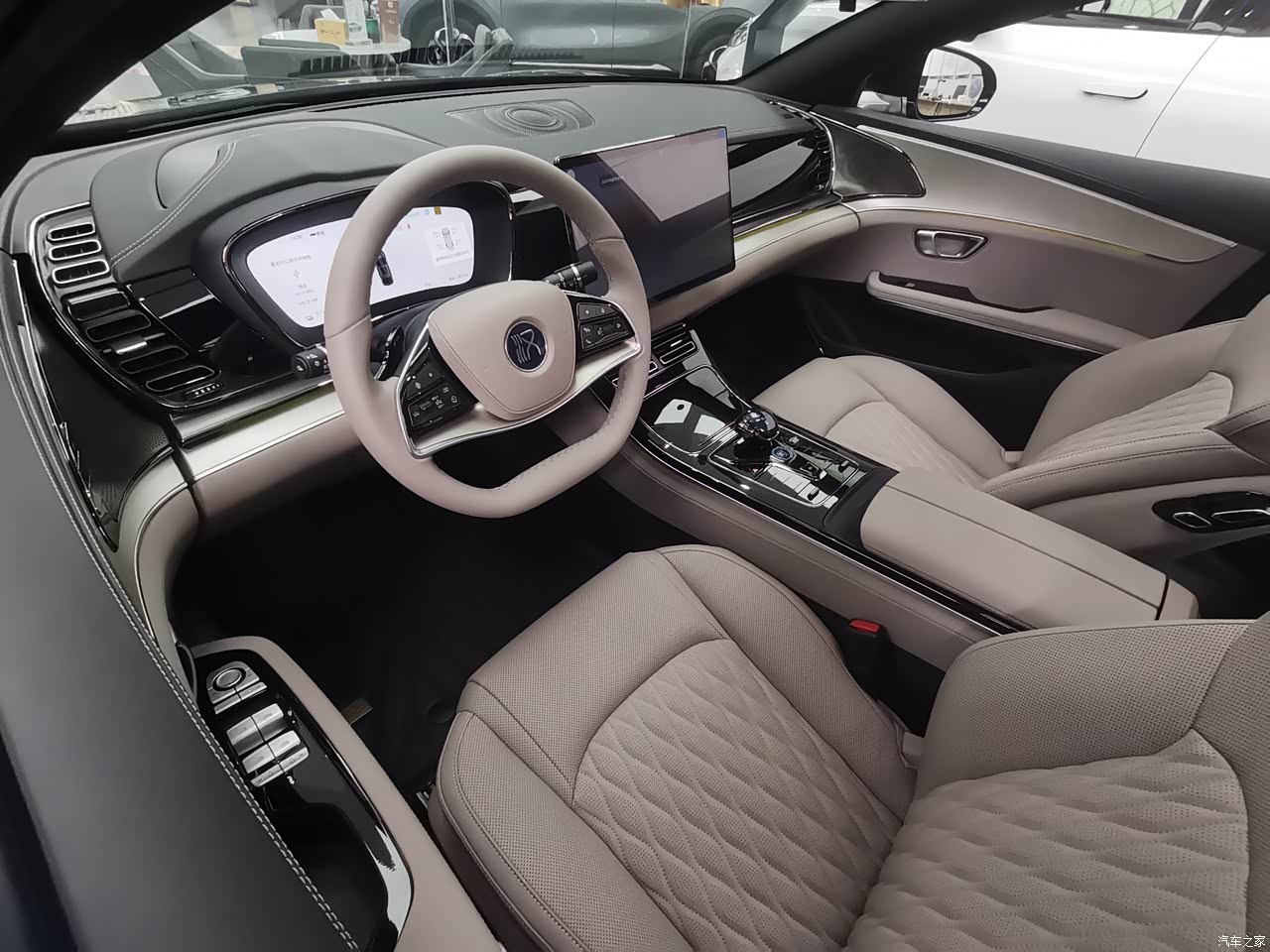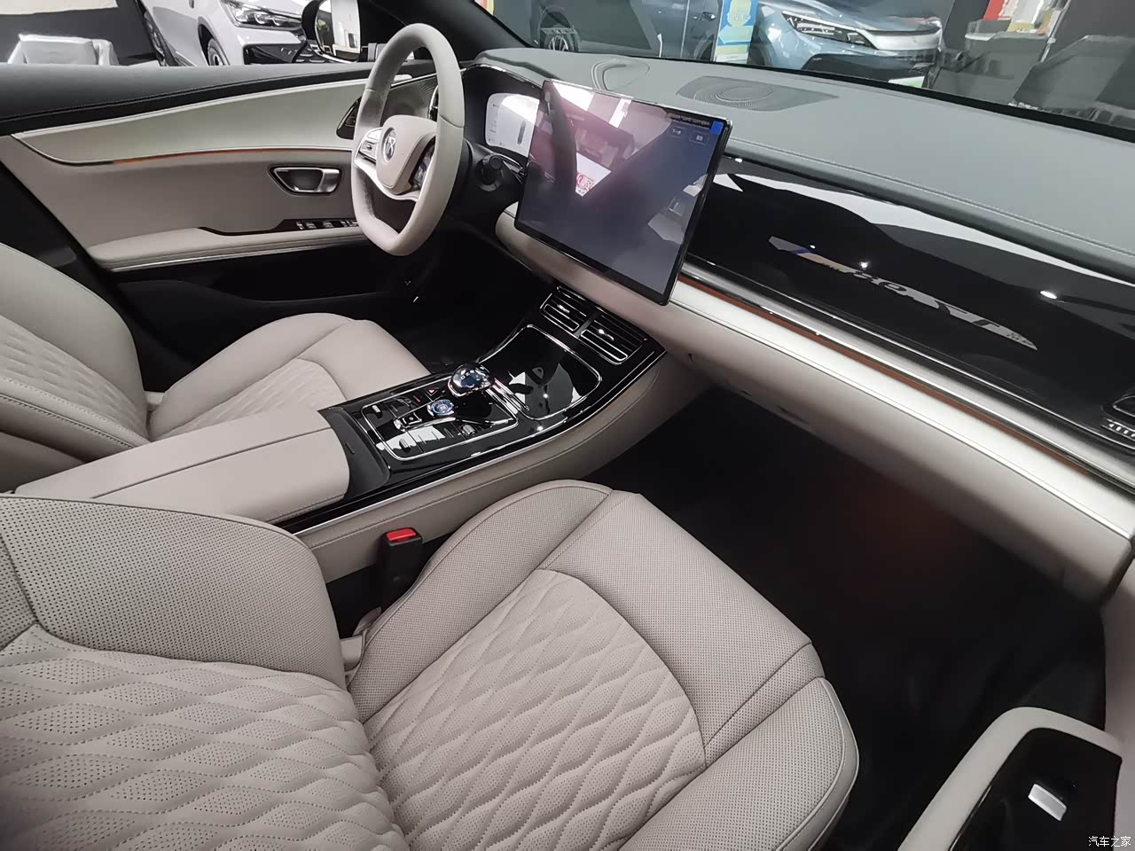 汉ev的内饰的整个内饰还是家族式的,钢琴烤漆中控+大尺寸中控屏,藕韵灰的内饰一眼看过去让人很舒服。不过马上加推的版本内饰会有大改,全面向汉L靠拢,会取消中控档把换成怀挡。不喜欢现款中款的,可以再等等加推的新款。