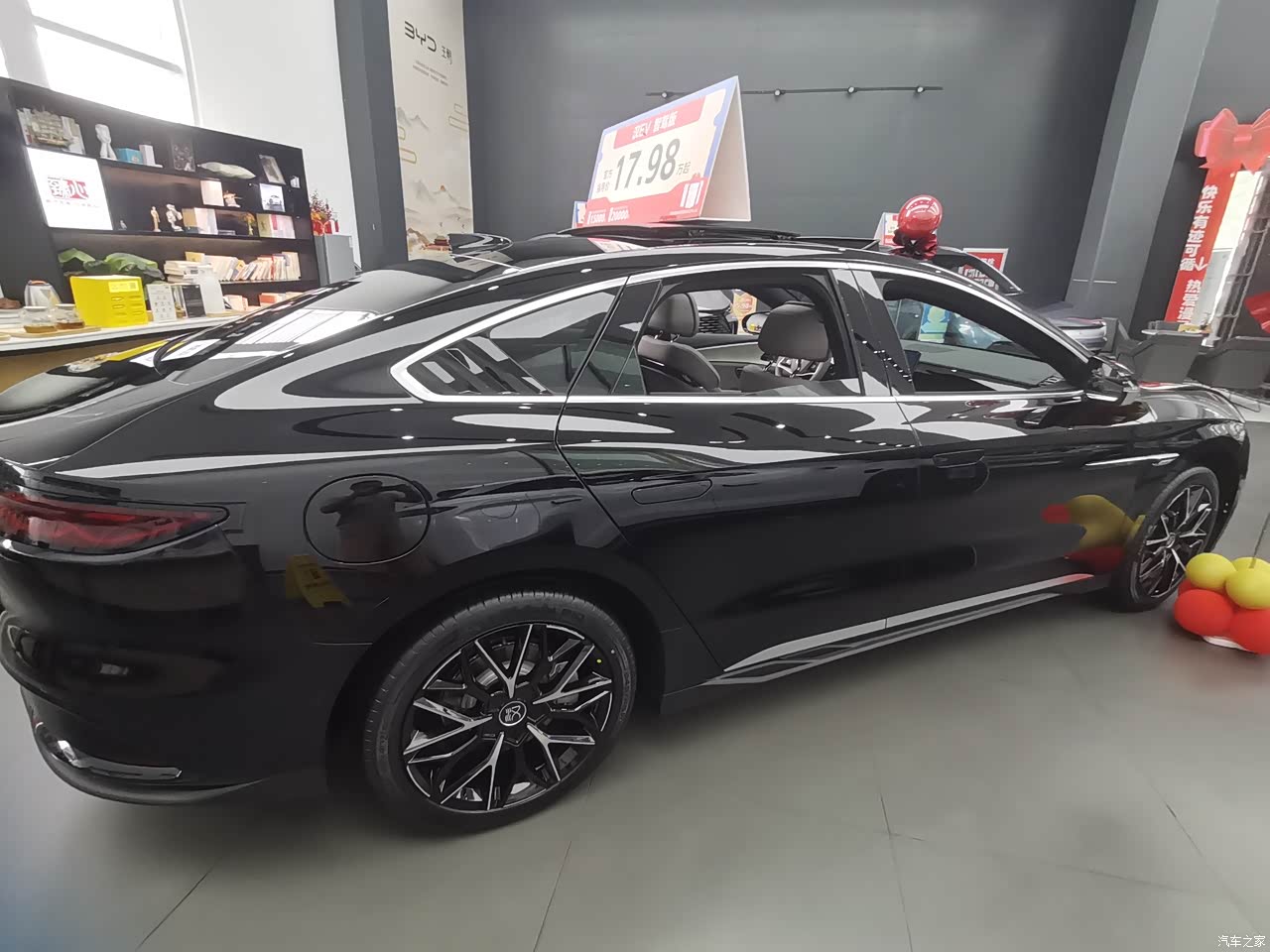 汉车型的外观属于成熟稳重派的,虽然外型很久没有大改,但这个外观依然能打。溜背线条从 A 柱一直滑到车尾,隐藏式门把手闭合后车身特别顺滑。未央灰色我感觉是最搭这个车型的,既满足了运动外观又兼具了家用的稳重风格。