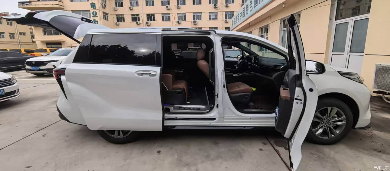 外观:确实比较像个大面包,优点就是外观看起来比较适合家用,商务风要弱很多,一般开这个车大家一看就是家用的了,白色车身耐脏,塞纳主要就是白色卖的好,需要加2000块钱。
