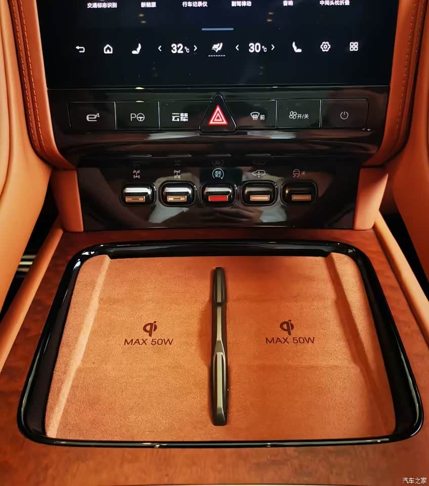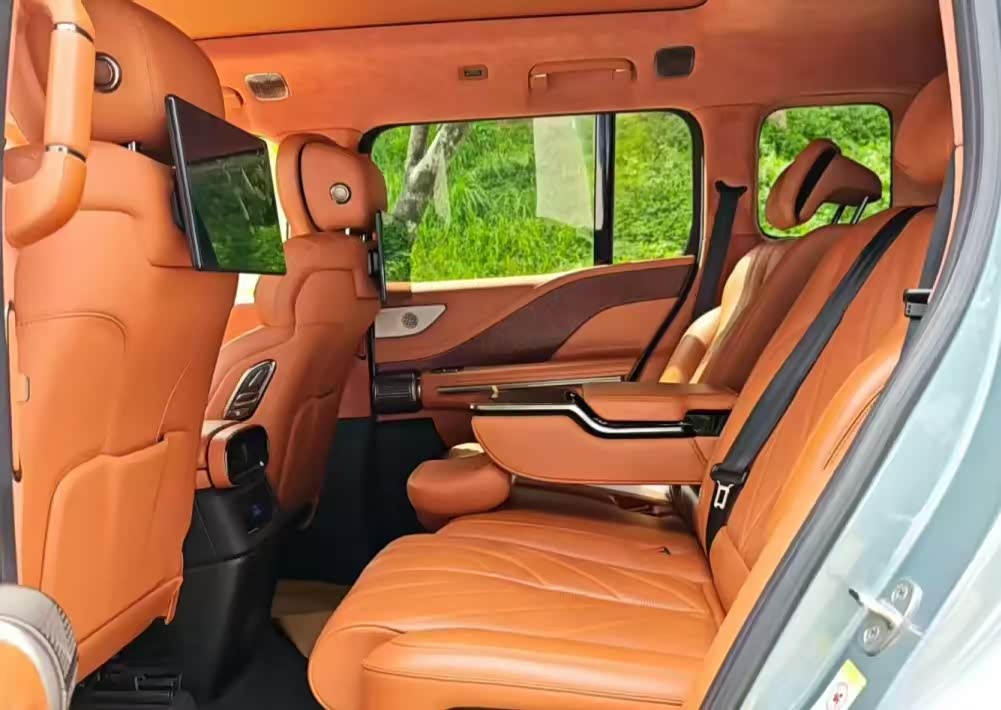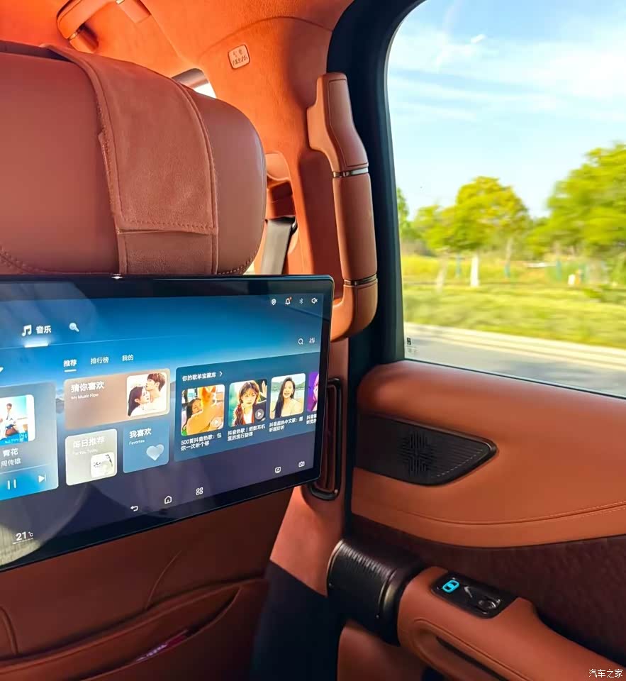 座椅宽大柔软,带加热、通风和按摩,且手扶箱的设计也很大,放一些小物件,小摆件都是可以的,尤其是副驾,腿托一展开,舒适感直接拉满。二排空间宽敞舒适,看车的时候还有其他人一起在车上,确实很宽敞,这车的地台有点高,老人小孩上下车不太方便,需要借助踏板。