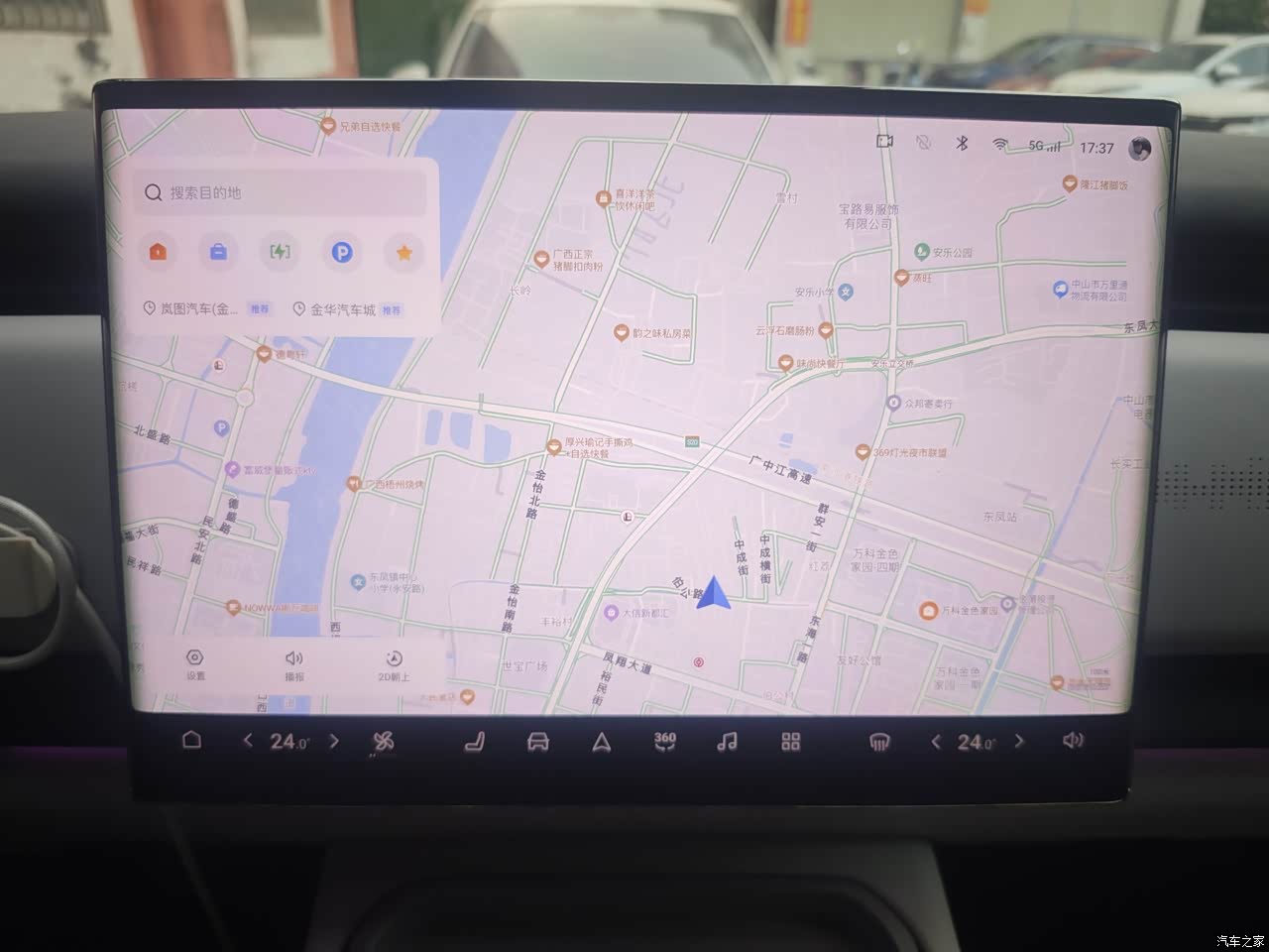 车机里头是高通骁龙8295P的芯片,用起来挺顺溜不卡,大屏幕能左右滑,我开车的时候导航在中间,副驾歇着就能把屏幕拉过去看个电影,语音助手还能分清主驾副驾,反应也快,调个空调开个窗户,喊一声就行,就是有些藏得深的功能还得自己动手点,地图是百度的,有时候遇到复杂的路口,指的路不太对,有一次还让我多绕了一圈,智能驾驶在高速上用NOA,路况好的时候自己跟着车变道都没问题,一碰上修路或者下匝道,系统就变得很小心,得人自己接手,跟那些头部的比还是有点距离。