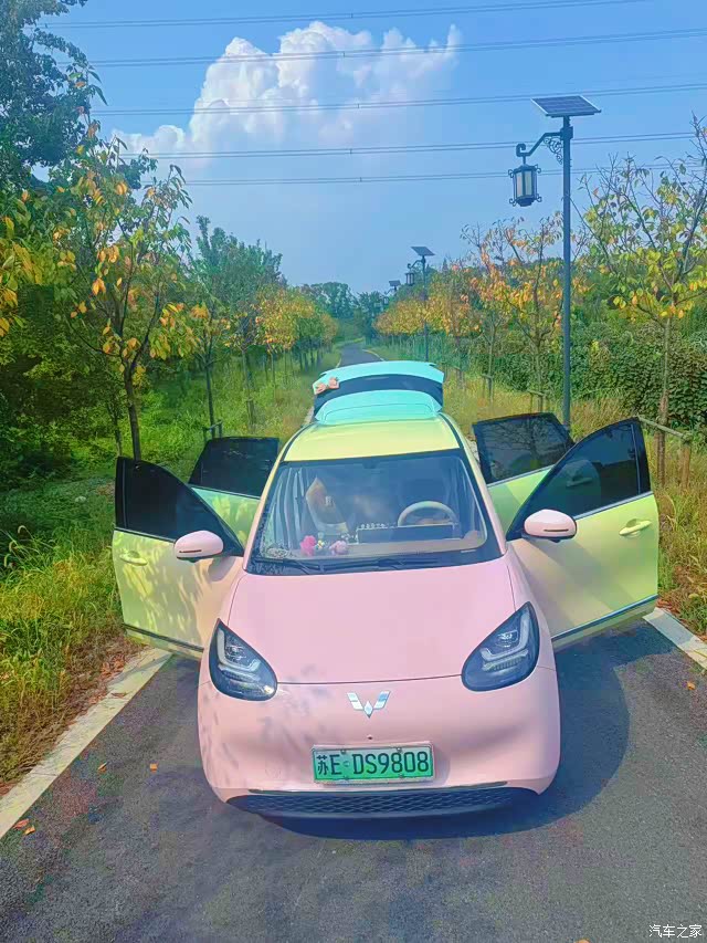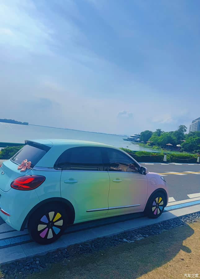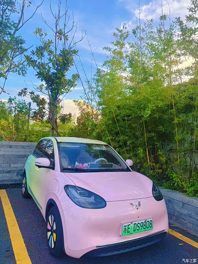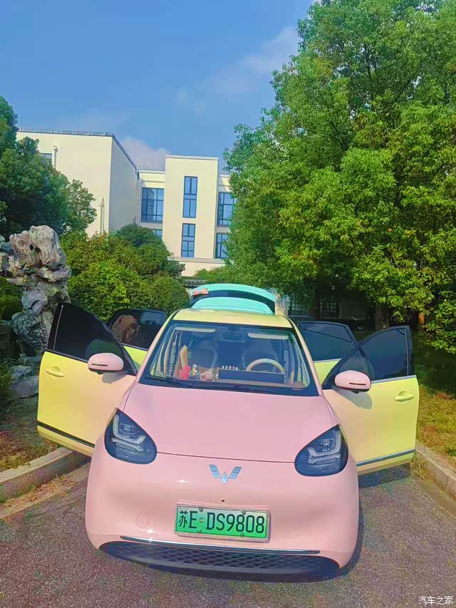我们家8岁的Amy是个很有主见的小姑娘,过年的时候提起想拥有自己的“秘密基地”。眼光独到的她一眼就看中了五菱缤果这款小车,在4月6日新车预售期就果断下定,刷她自己的银行卡全款拿下!包括后续改色、装饰等等都是她出的钱,因为她坚持自己人生中第一辆车不借助任何帮助!(当然,大家放心,她还不会开,爸爸是专属司机) 现在已经提车半年,跟大家分享一下真实的用车感受吧! 购车明细 - 裸车价:74800元 - 预售补贴:2000元(4月19日后补贴为4000元,厂补发放周期约3-6个月) - 保险:6022.26元(温馨提示:电车新手记得多比价哦) - 上牌费:500元 - 购置税:0元(新能源车免税) - 落地总价:81322.26元 首先呢,最满意的:颜值是真的能打!圆眼睛萌哒哒的,经过改色之后停学校门口经常被其他家长问。