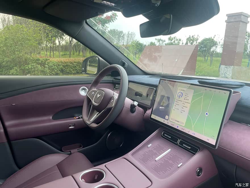 内饰也是选的紫色,和外观呼应,一坐进去就觉得这氛围绝了,中控面板啊座椅都是软皮料做的,摸起来比我的ES300的皮质软多了,而且提车的时候也没什么异味,就是有那么一点点新车味儿,放两天就好了,我朋友的Model Y内饰太素了像毛坯房一样,岚图紫内加个渐变氛围灯晚上开车感觉很暖的样子很有质感,但是紫色内饰也有问题,很容易脏!才开了不久就已经被两杯咖啡溅上了污渍,要用专用清洁剂擦拭好久才能洗干净,再者中控下部的储物格虽然空间很大,但由于没有进行分区,所以一旦把手机、钥匙、充电线放进去就会显得杂乱无章,如果能加上小隔板分层就更好了,而且方向盘的皮革虽然柔软,但在冬天刚上车时却有点冰凉,要是可以加装加热装置的话那就太好了,总体而言,在这个价格区间里它的内饰质感和颜值已经很出色了。