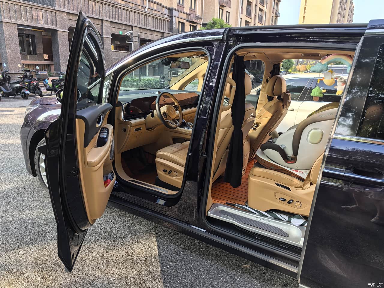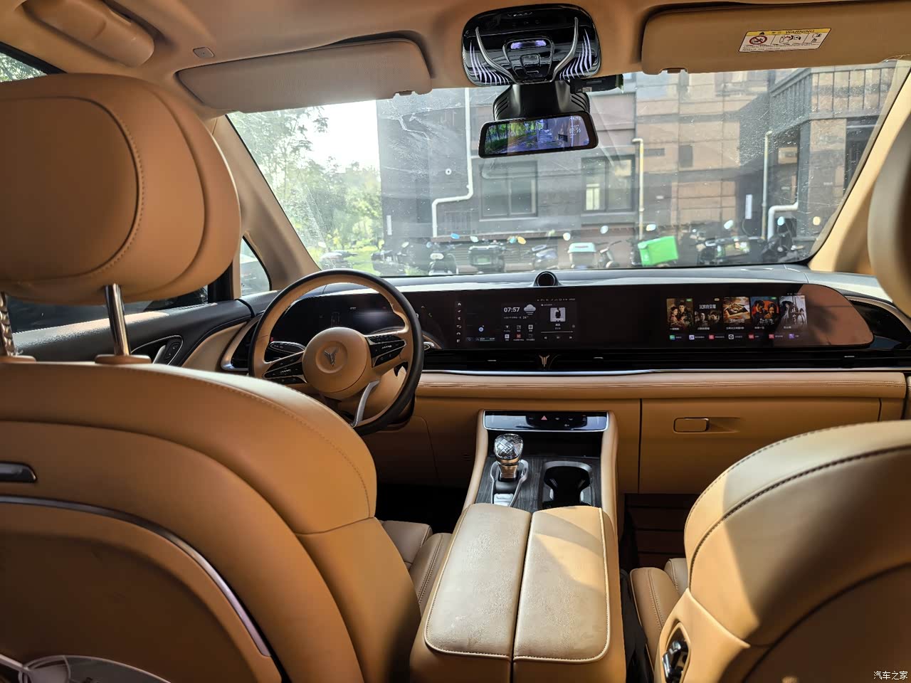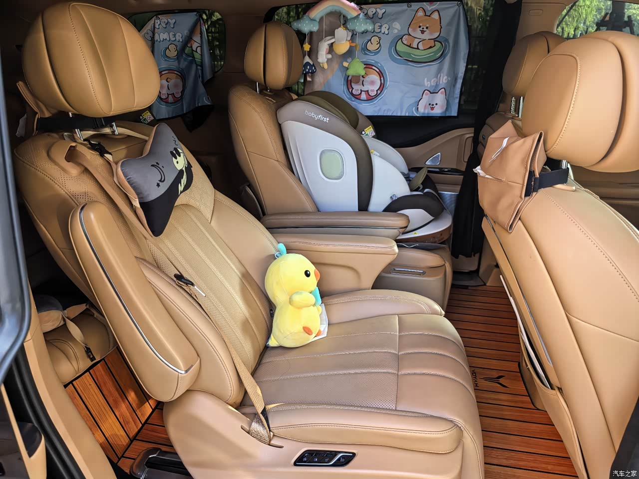 选的驼棕色内饰温馨耐脏摸着特别有质感,车内的软质材料包裹着能接触到的地方别的MPV总显得老气,中控台的设计很简单,看着挺清爽的,这个颜色就特别高级成熟,然后之前对比一个颜色那就不怎么耐脏,我怕家里孩子随便吃点零食就没了,但也有一些缺陷就是内饰里面储物空间不是很多,手机啊钥匙之类的这些小东西就没地方放,不过整体上豪华感还是有的,坐进去也不会觉得廉价。