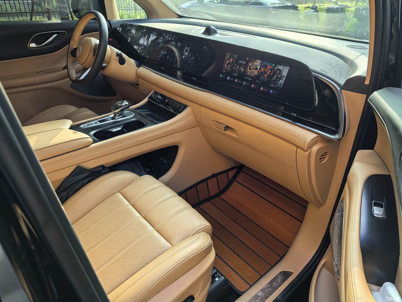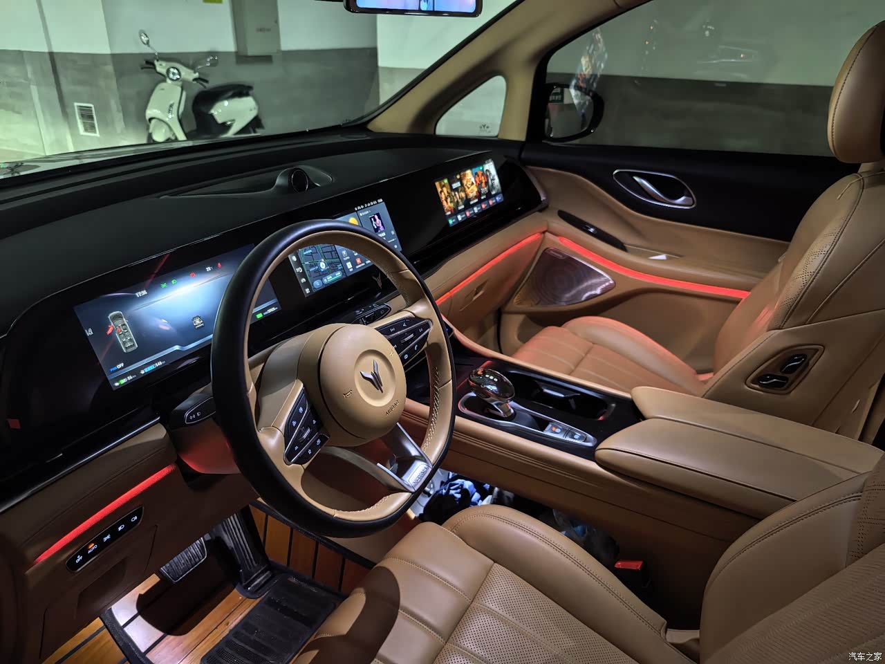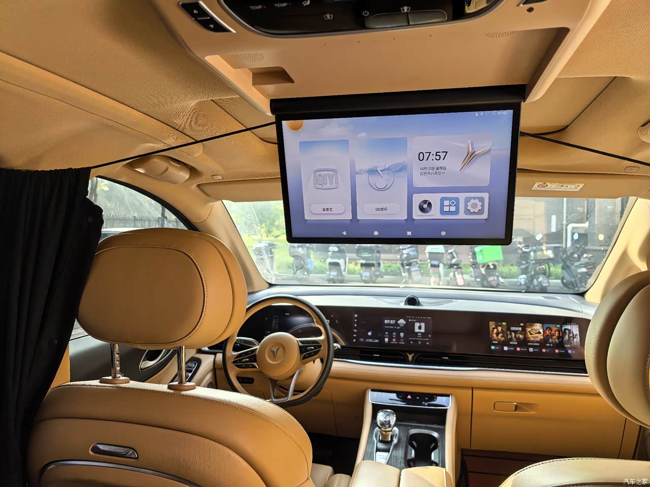 选的驼棕色内饰温馨耐脏摸着特别有质感,车内的软质材料包裹着能接触到的地方别的MPV总显得老气,中控台的设计很简单,看着挺清爽的,这个颜色就特别高级成熟,然后之前对比一个颜色那就不怎么耐脏,我怕家里孩子随便吃点零食就没了,但也有一些缺陷就是内饰里面储物空间不是很多,手机啊钥匙之类的这些小东西就没地方放,不过整体上豪华感还是有的,坐进去也不会觉得廉价。