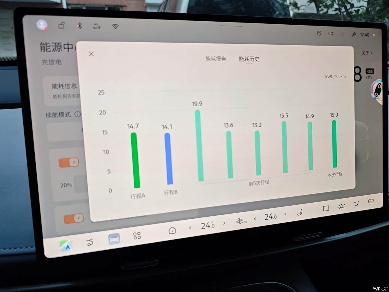 感觉10-28度的天气,不堵车,红绿灯正常情况,应该能跑500左右,没什么红绿灯,能跑600左右;早高峰,堵车,正常红绿灯,估计400多;高速,110(不想开太快,安全好控制一些)以下,预估500左右;然后10度以下,堵车,开暖风,正常红绿灯,感觉可能300左右吧,今天早上就是10km掉了4%的电。