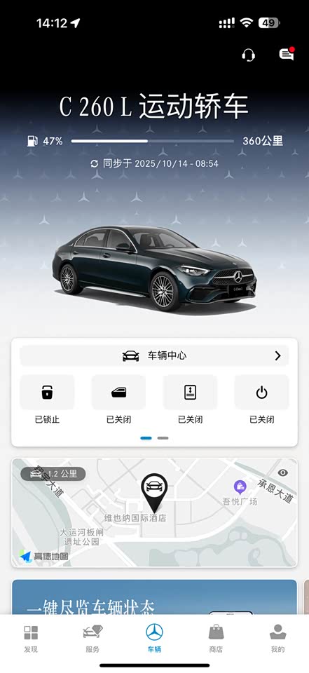 最满意的还是驾驶体验。开起来很顺手,底盘稳,转向也轻盈。虽然是1.5T发动机,但204匹马力对我这个女生来说完全够用,不管是市区通勤还是跑高速,动力响应都挺及时,超车也没什么压力。这个奔驰app会随着节日不同而更换主题,还挺有心意哦