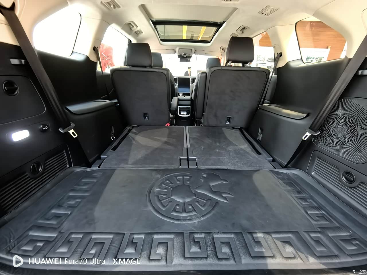 红旗2025款HS7 PHEV四驱旗领6座的内饰设计——2920mm轴距下,六座布局实现“每座皆尊”的豪华体验。科技配置方面,12.3英寸全液晶仪表+12.6英寸竖置中控屏集成高通8155芯片,支持AR-HUD增强现实导航与L2级智驾系统,双40W无线快充(带主动散热)与23处储物空间(含15英寸笔记本专属位)强化实用属性。实木饰板与金属拉丝面板以“中轴对称”布局贯穿,256色氛围灯随驾驶模式智能流转,丹拿12扬声器音响与母婴级环保材质,共同塑造“科技与东方美学融合”的沉浸式座舱!
