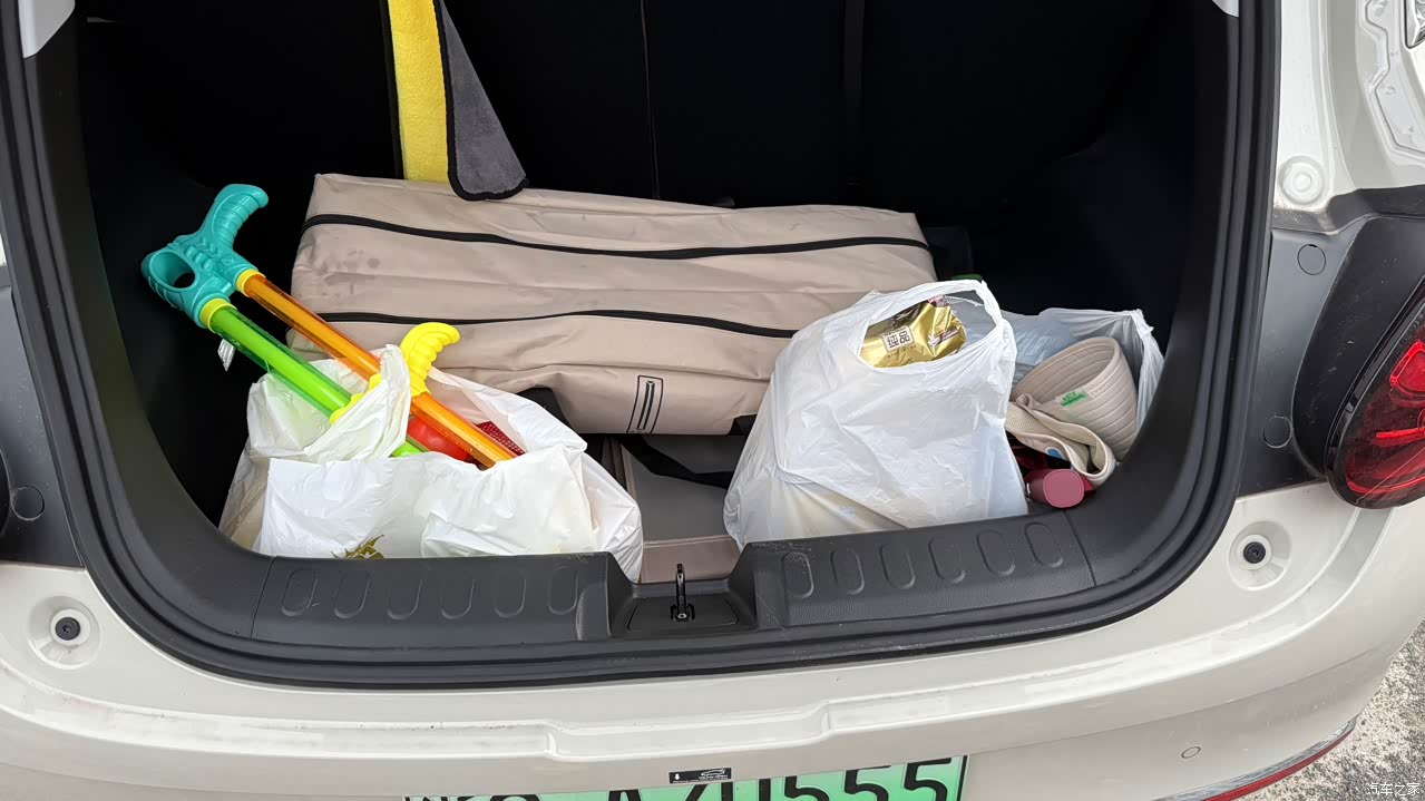 空间更是惊喜,别看它外表小巧,后排空间真的超出预期!我身高165cm,坐后排腿部还有两拳多也不顶头。 最让我惊喜的是后备箱,下沉式设计超级能装!上次和朋友露营,放了两个行李箱+帐篷+折叠椅,居然还没塞满。日常买菜、取快递更是轻松拿捏。