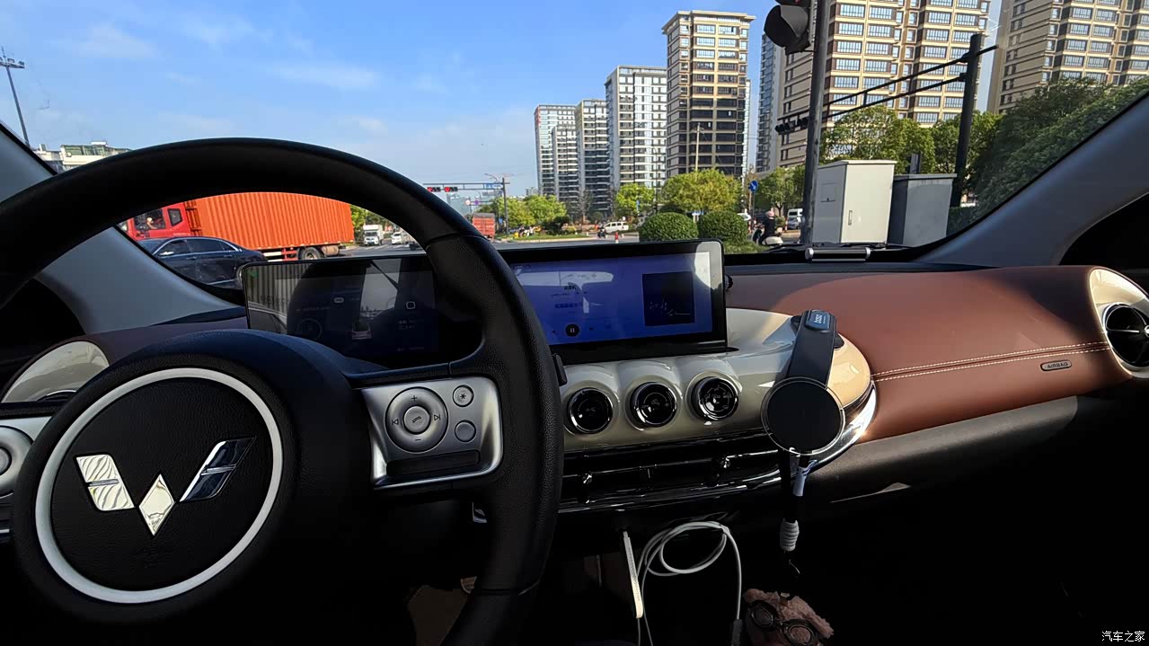 缤果的小巧车身,方向盘很轻,掉头一把过,小区里的窄路也能轻松钻。 标配的倒车影像+后雷达,基本能一把进。