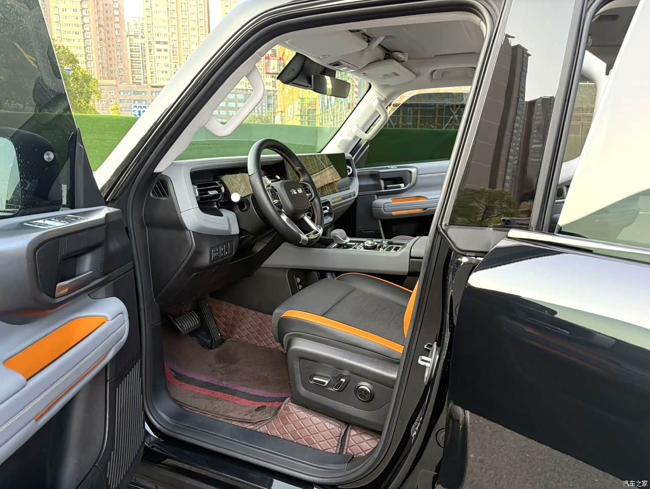 外观绝对是加分项,硬派越野风格,线条硬朗,看着就特别结实。车身比例很协调,市里开或者郊外越野,都挺合适。我选的车神身黑配色,特别有硬汉感,好多人都觉得挺不错的。