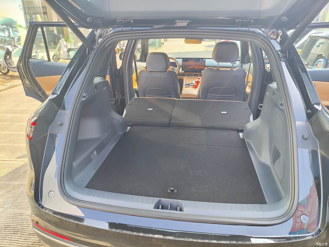 空间也特别满意 我185的身高坐后排也不拥挤 腿部和头部都还有一拳的空间。尤其是后排座椅放倒后是平的 可以睡下2个成年人,还带外放电外出露营神器
