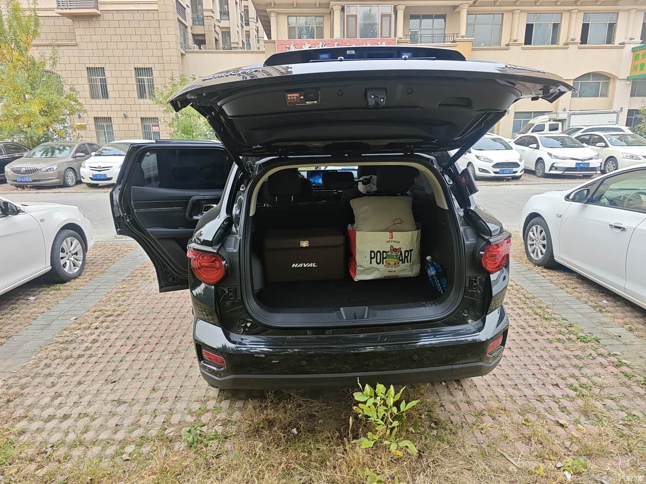 后备箱出乎意料的有点尴尬。感觉还行可是东西放不了多少。感觉还没有以前的两厢车放的多。出去玩装上帐篷和杂七杂八基本没什么空间了